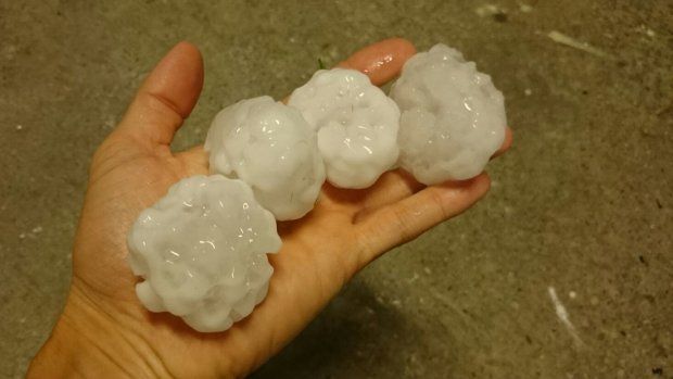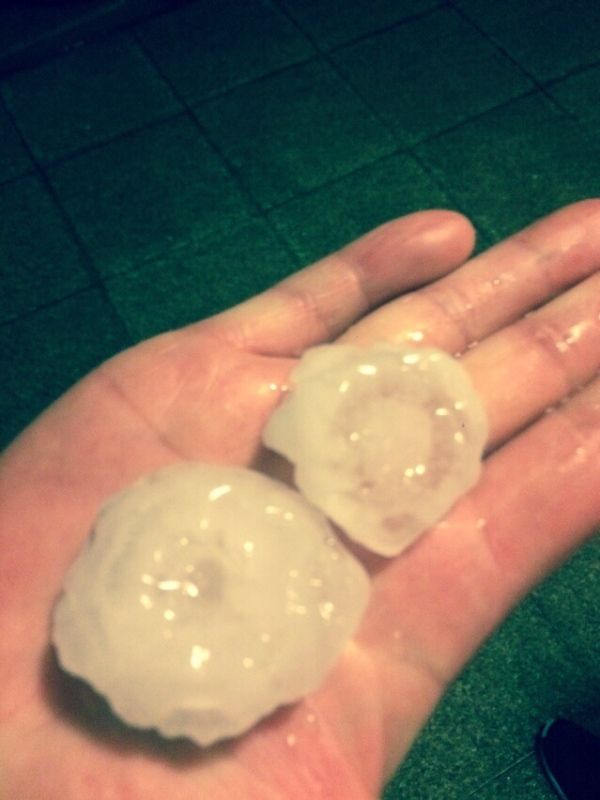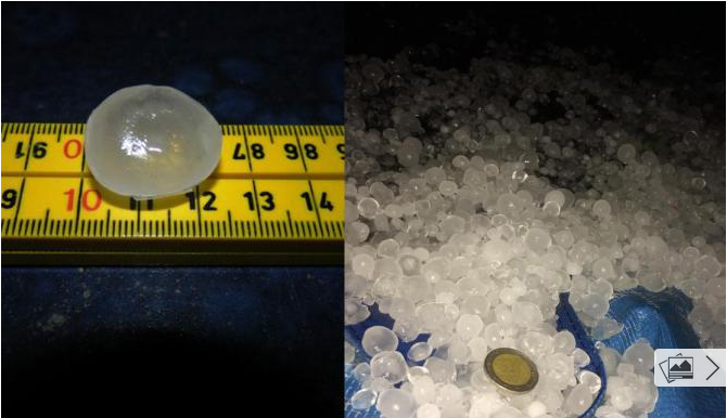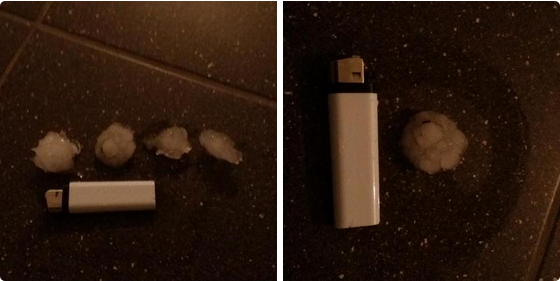 Als eerste volgt een foto uit Belgiƫ, van hagel die door de eerste supercell die ontstond werd geproduceerd.
