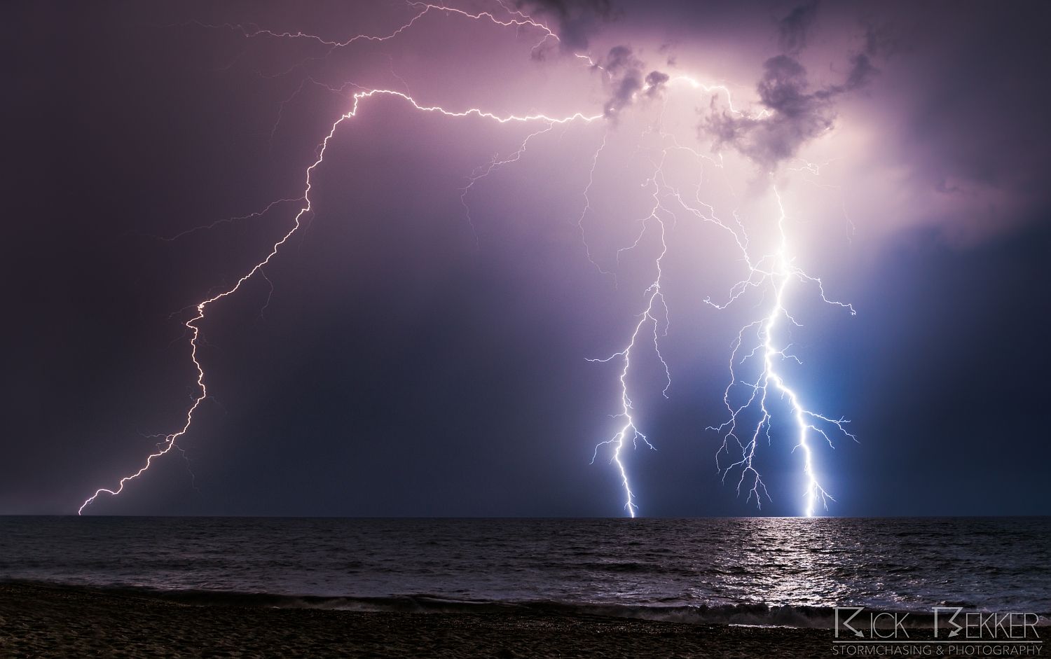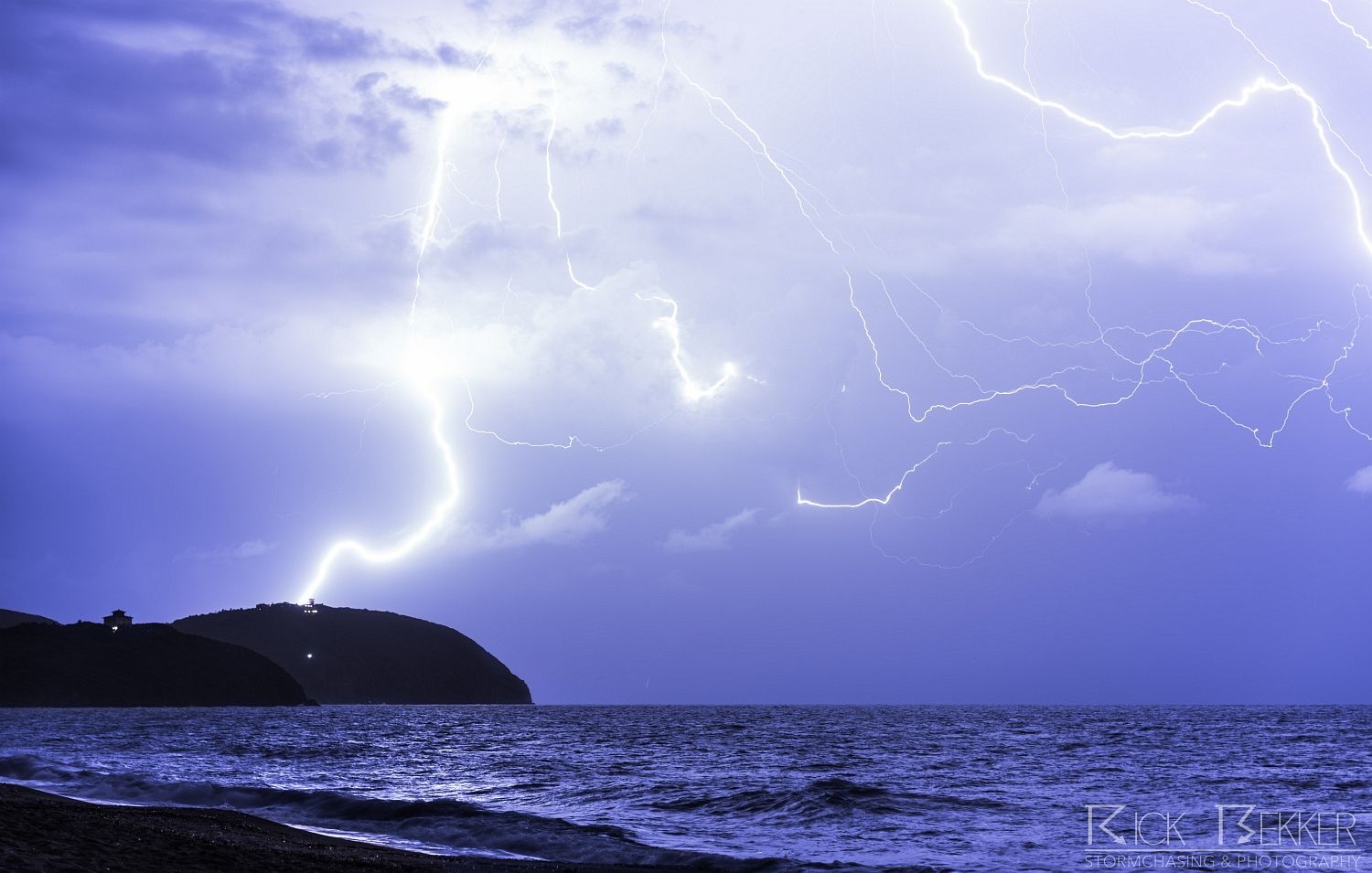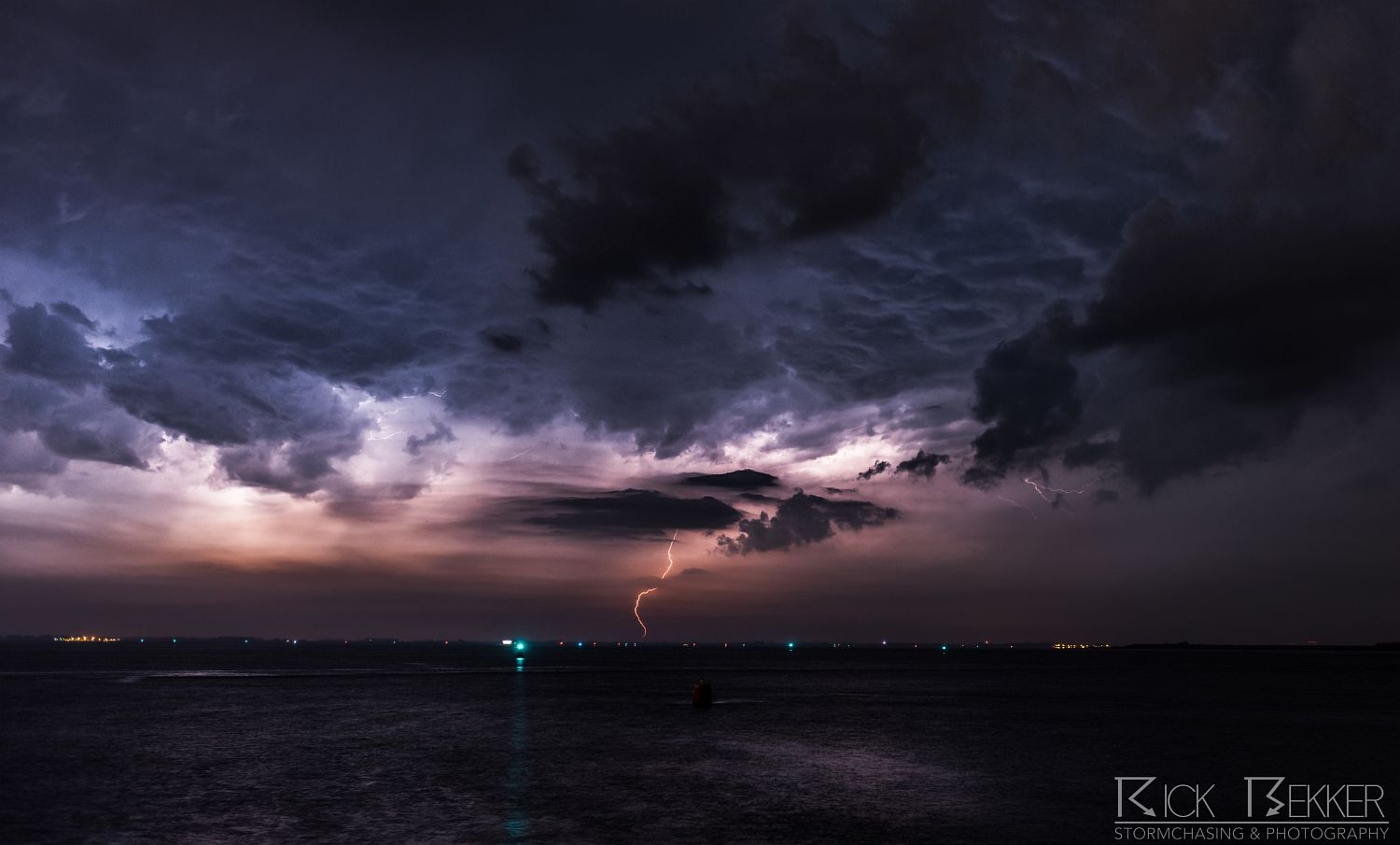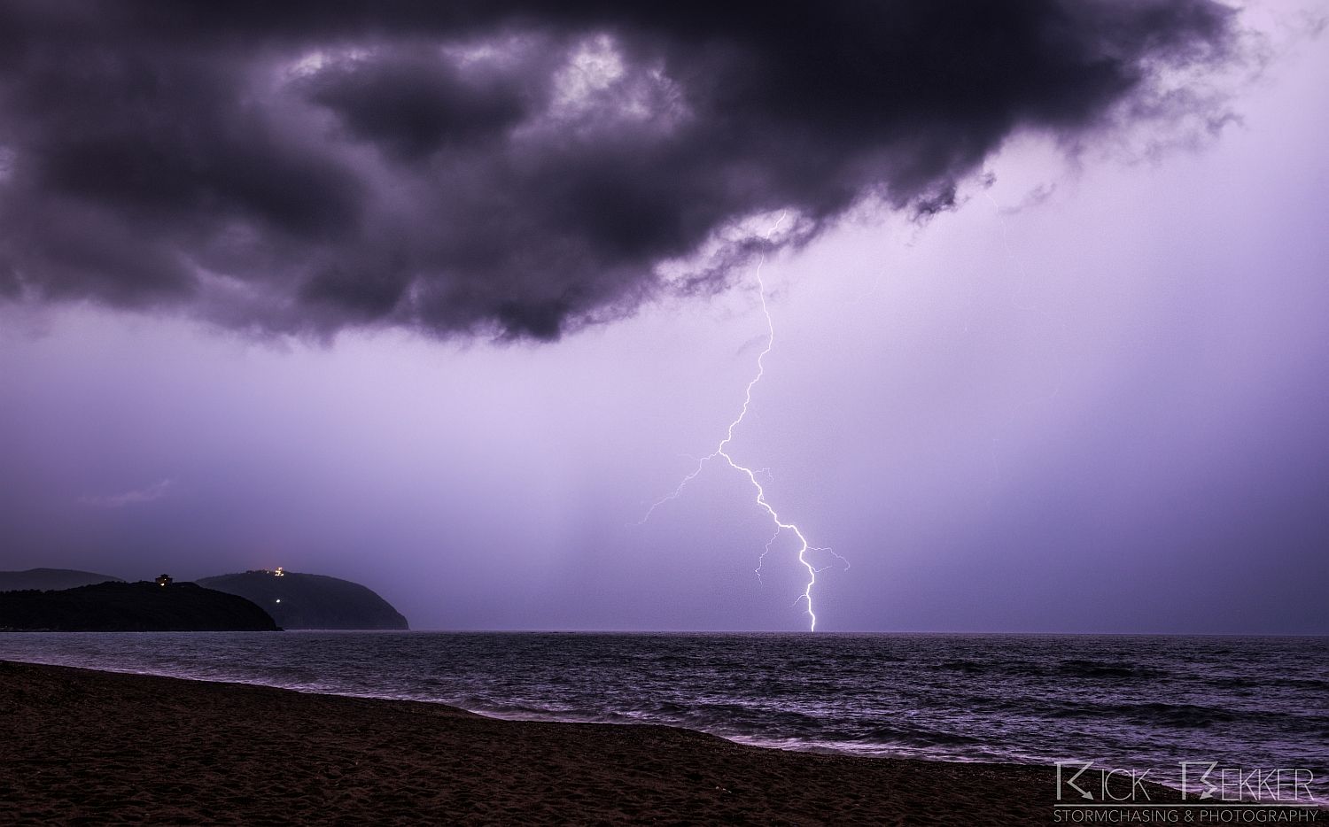 Na een ontspannende dag zwemmen en zonnen begon het in westelijke richting te flitsen. Snel heb ik mijn cameraspullen gepakt en ben ik naar het strand bij de camping gegaan om daar het vonkjesgeweld op te wachten.