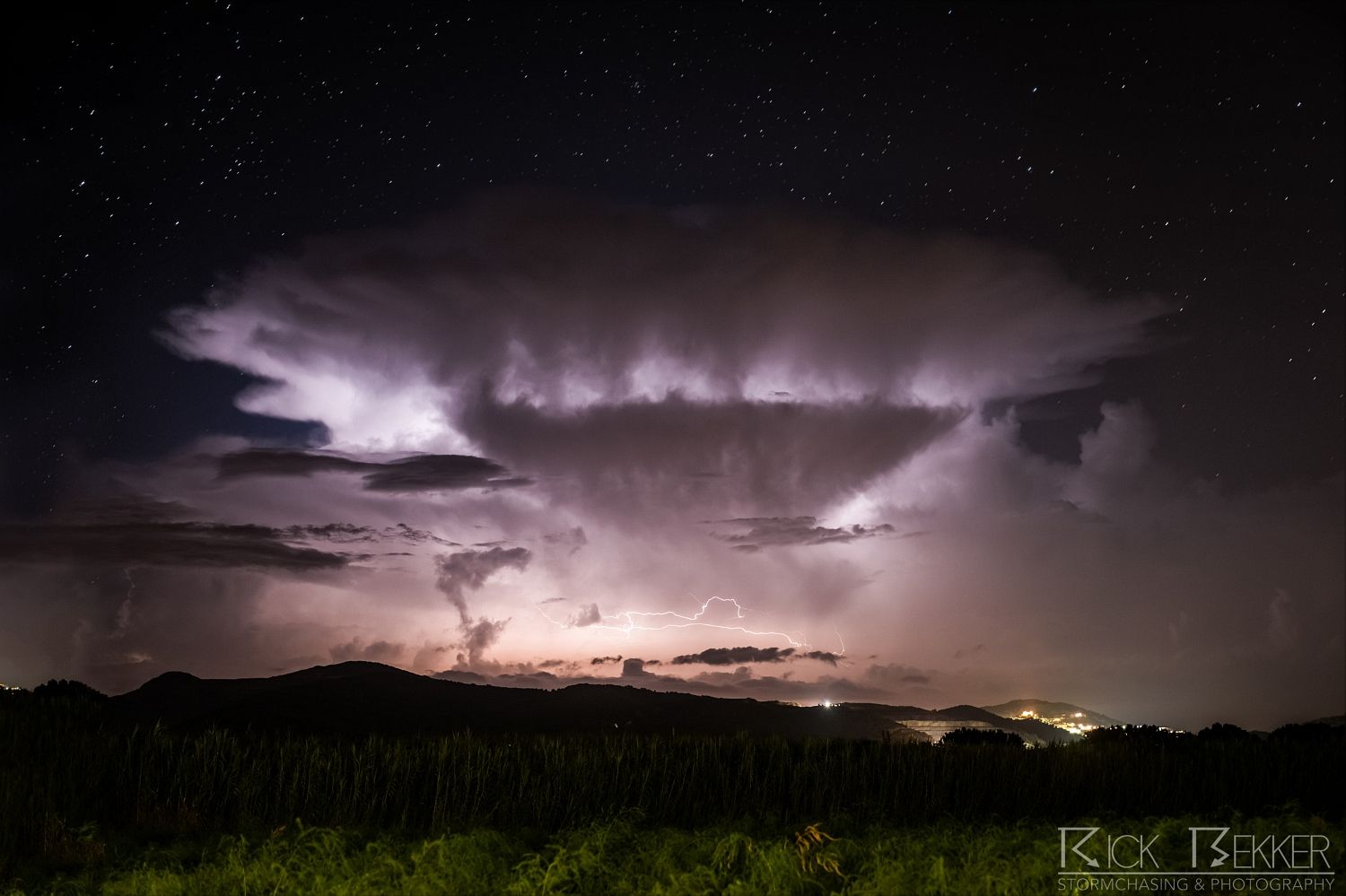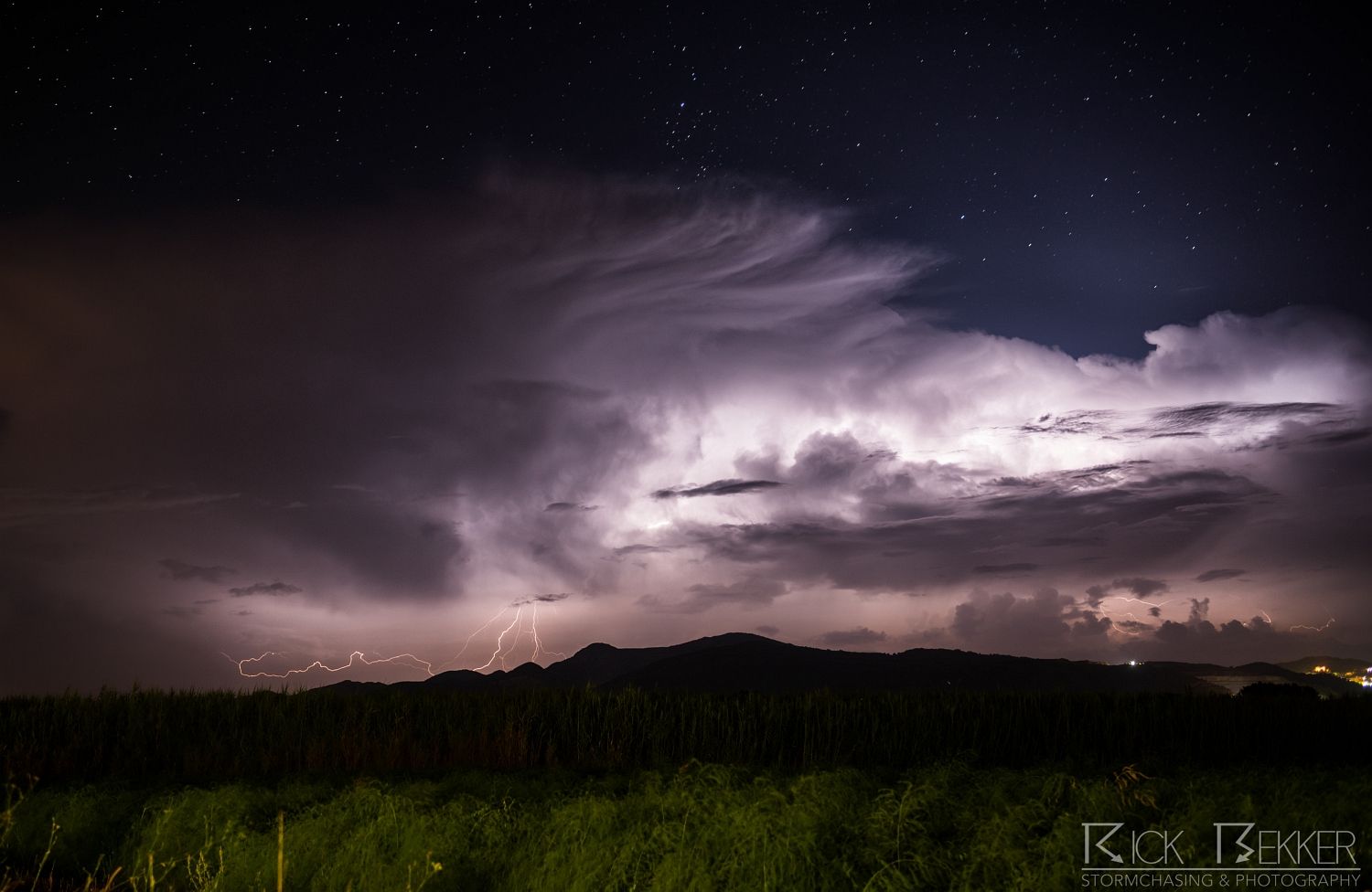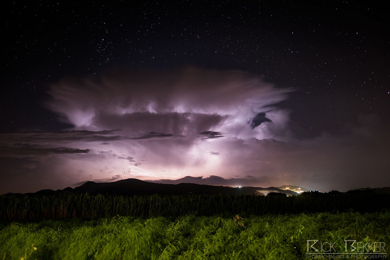 Nog een laatste keer knallen! Tot nu toe heb ik genoten van een heerlijke, warme en bovenal zonnige vakantie. Maar het convectieve geweld in de avond maakte alles natuurlijk nog veel mooier. Voor een derde keer mocht ik genieten van een avond vol onweer, dit richting het einde van mijn vakantie.