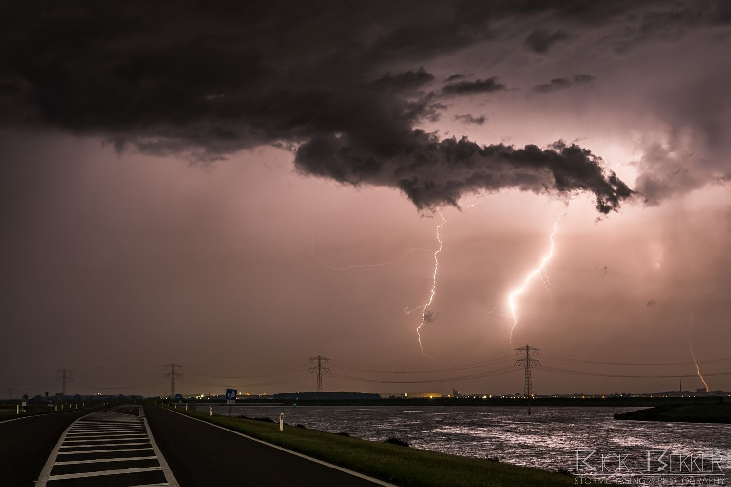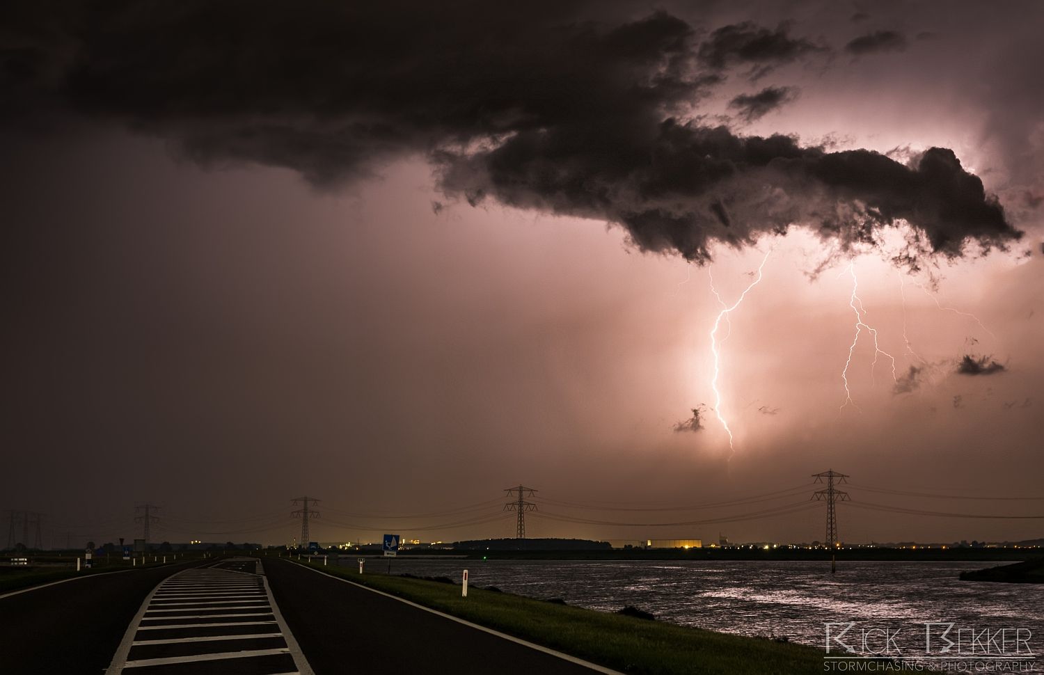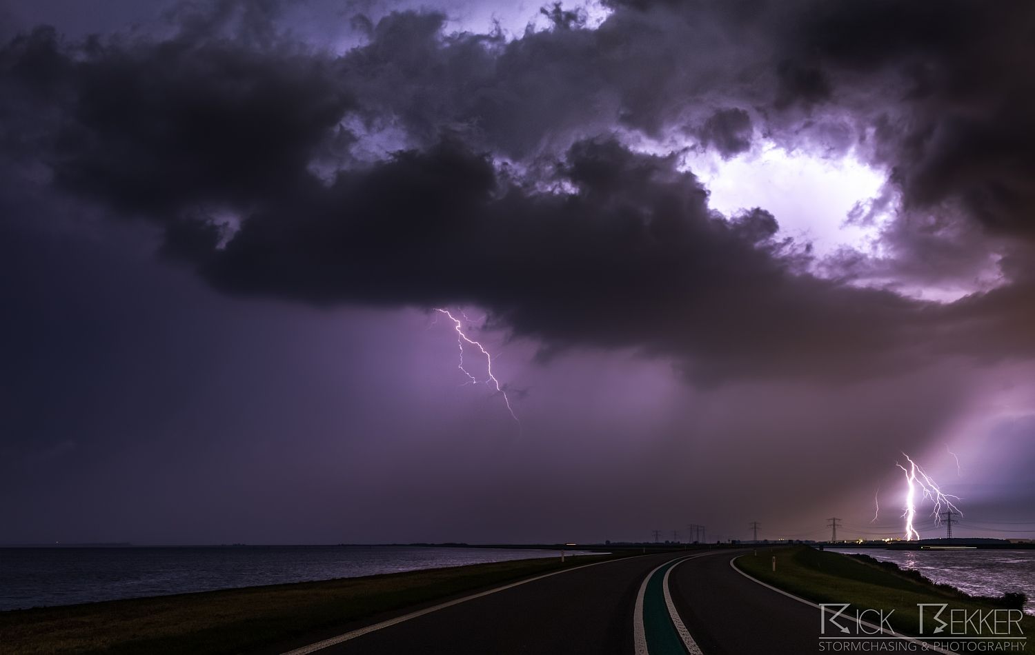 Boven Zeeland was een meer zuidelijke ontwikkeling binnen het complex gaande. Diverse embedded supercells waren ondertussen al een feit. Uit diverse hoeken kreeg ik de melding van (zeer) grote hagel. Veiligheid staat voorop en dus besloot ik ondanks de geweldige lichtshow om het complex nogmaals te corepunchen tussen 2 kernen in. Dit om aan de ''veilige'' noordzijde te komen waar grote hagel veel minder snel zal voorkomen.
