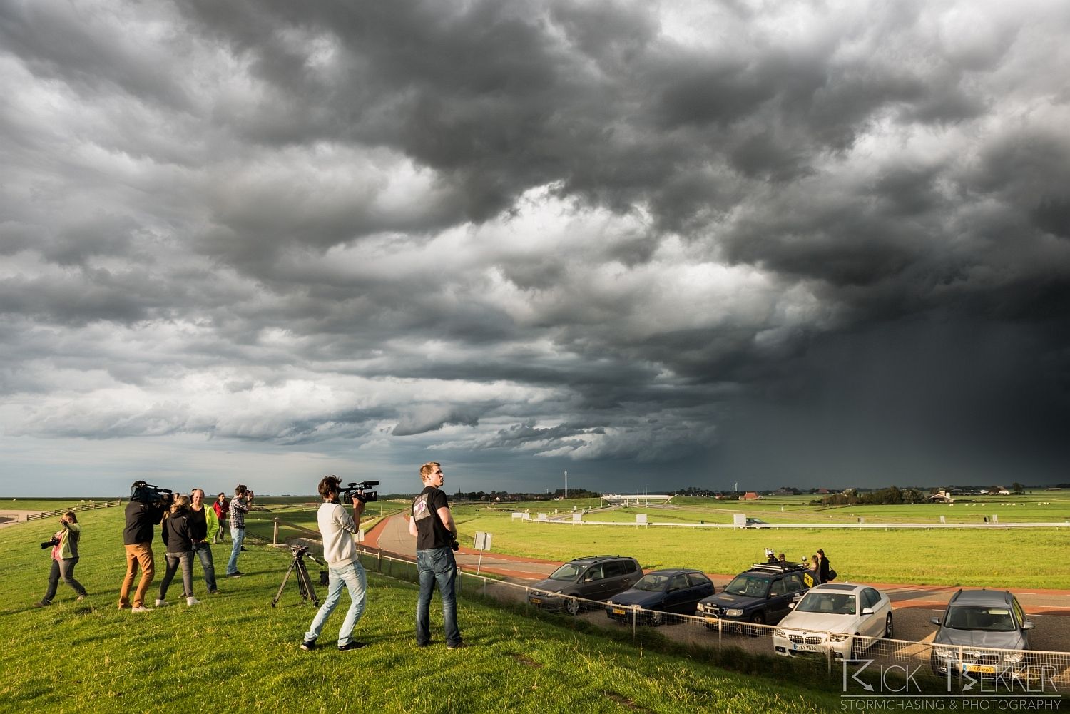 Half stormchasend Nederland was ondertussen vertegenwoordigd op de dijk.