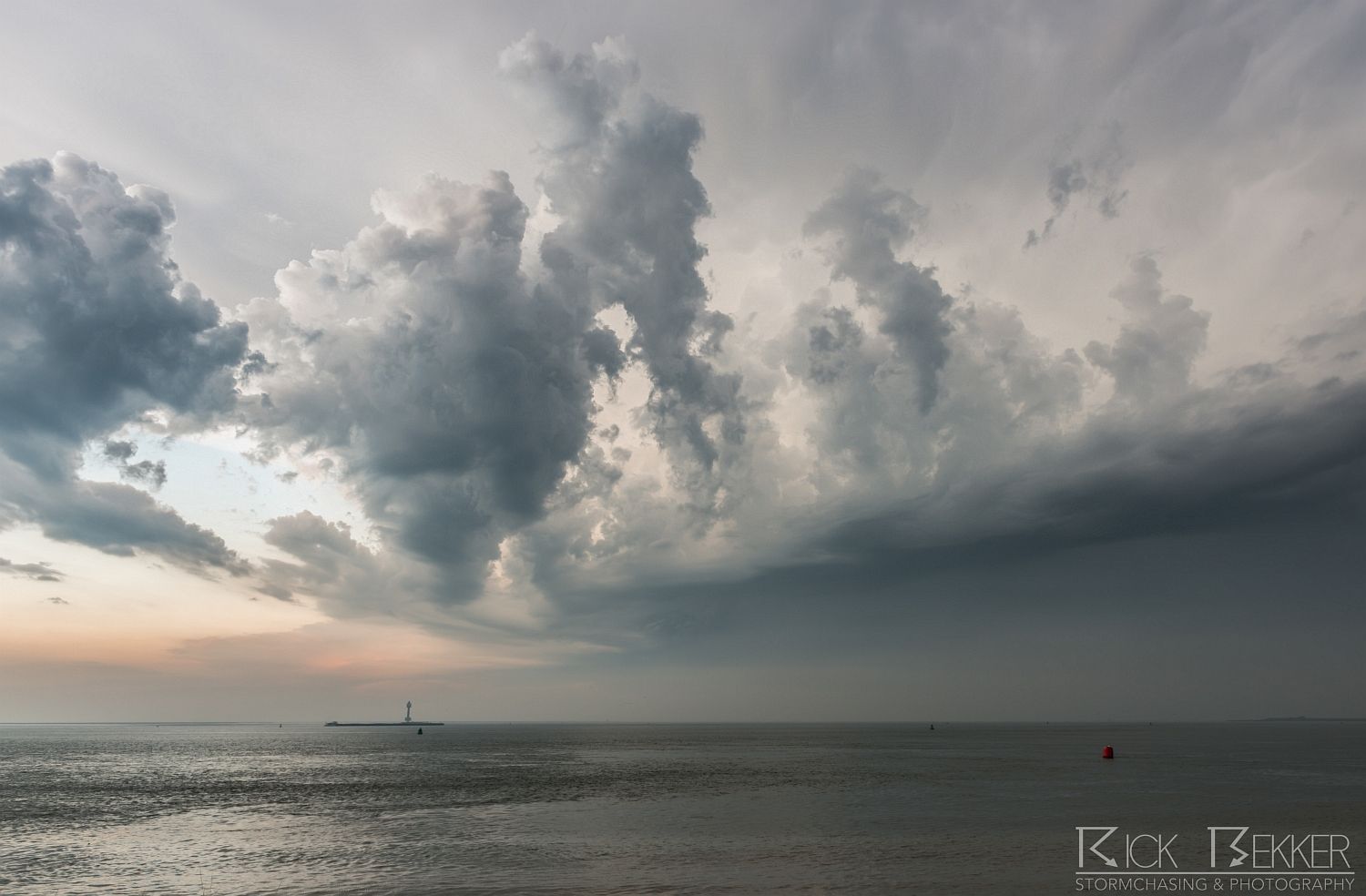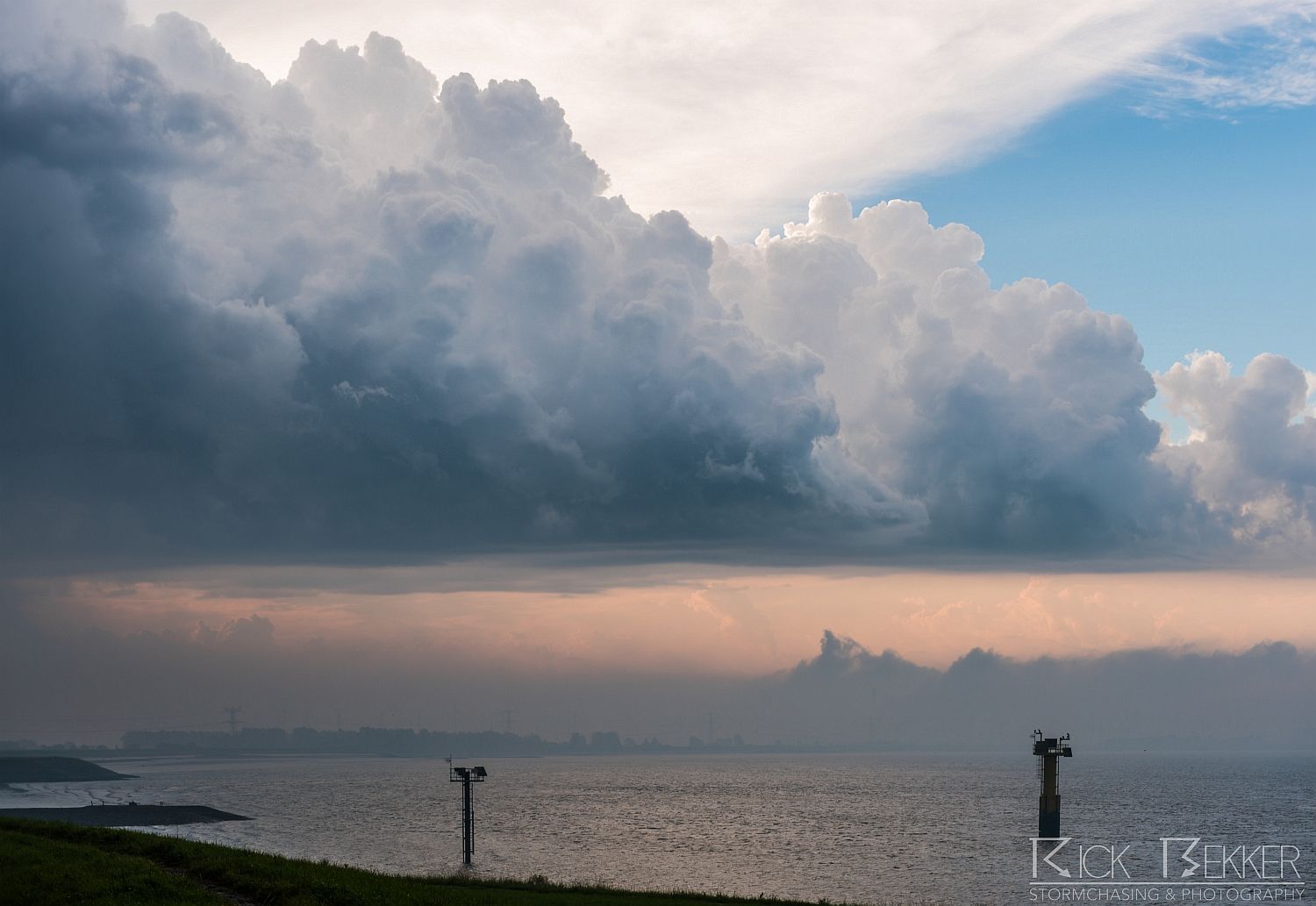 Het is ondertussen 20:30 uur en terwijl ik mijn auto aan het stofzuigen ben, zie ik in zuidwestelijke richting enkele CU's snel de lucht in schieten. De verwachtingen waren dat de eerste buien pas na middernacht zouden ontstaan, dus dit was relatief onverwacht. Snel heb ik de auto geladen met mijn cameraspullen en heb ik de radar geraadpleegd om de situatie te bekijken. De eerste echo's waren direct bijzonder fel. En wat blijkt: chasen is niet nodig deze keer! Vanaf mijn woonlocatie (Zwijndrecht) zit ik op enkele kilometers verwijderd van de zuidelijke kant van de ontwikkelende cellen. Aan de hand van deze situatie heb ik na een verschrikkelijk vermoeiende autorit van 700 meter één van mijn vaste fotolocaties geclaimd.