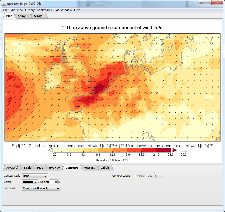 Overigens, wie het zelf leuk vind om met model data te stoeien, maar geen zin heeft om te programmeren zou Panoply eens moeten proberen. Een tooltje om allerhande grids te visualizeren, waaronder GFS data. Je hoeft de GFS data niet eens te downloaden, want je kan de OpenDap service van NCEP gebruiken.