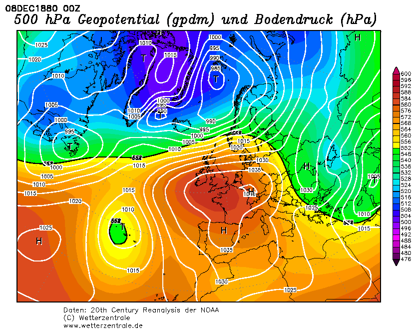 December 1880 was een zachte, regenachtige maand. Met overstromingen in Belgiƫ en het zuiden van Nederland. Vooral in de derde decade, zo rond Kerst ging het flink tekeer met tientallen millimeters die naar beneden kwamen. De voorgaande maanden waren al nat en dat leidde dus, tot de genoemde overstromingen. De kranten stonden vol met berichten dat de winter maar niet komen wou. En wat een verschil met december 1879, toen men een heerlijke december beleefde, vol met ijsplezier op prachtig ijs. Dan vooral in het zuiden, want door een Eurohoog, gevuld met kou en op een continent vol met sneeuw was het met name daar erg koud.