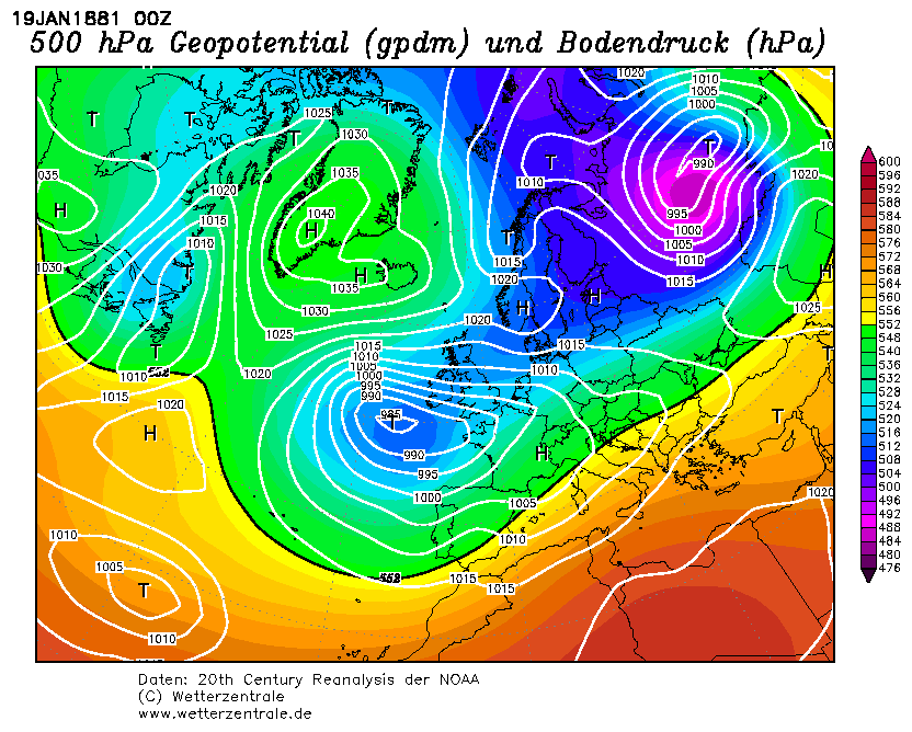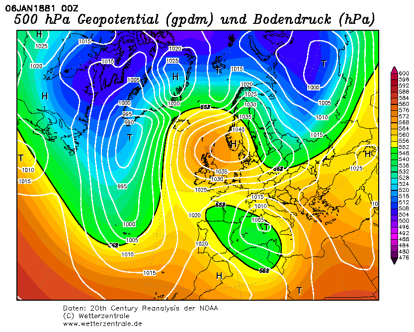 Goed. We gaan terug naar 1880. Overstromingen en geen winter aan het eind van december en begin januari. En hopeloze kaarten (gelukkig waren er toen geen of nauwelijks weerkaarten en zeker geen verwachtingen, anders dan 1 dag vooruit).