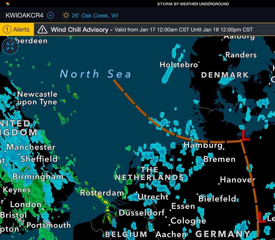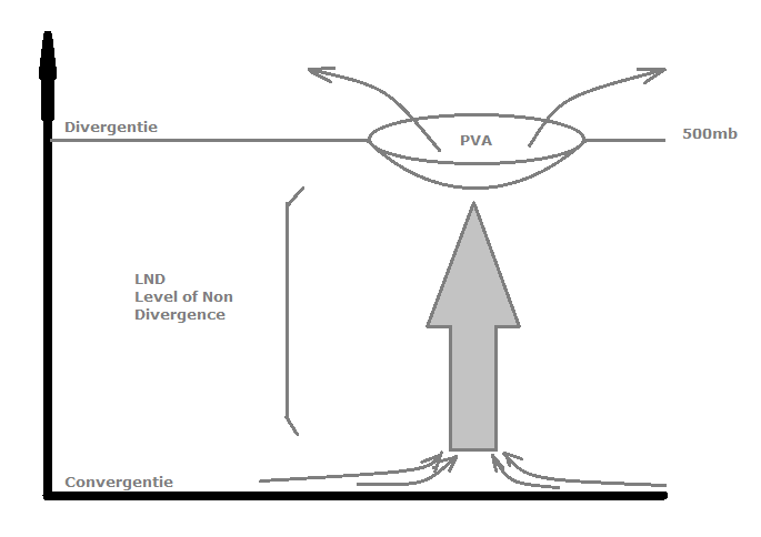 Plaatje twee, knik in trog bij het laag dat loopt van Duitsland naar Nederland en de Noordzee op, is de twee storingslijn/trog waar PVA heerst, bij hoge druk hadden we van NVA moeten spreken: