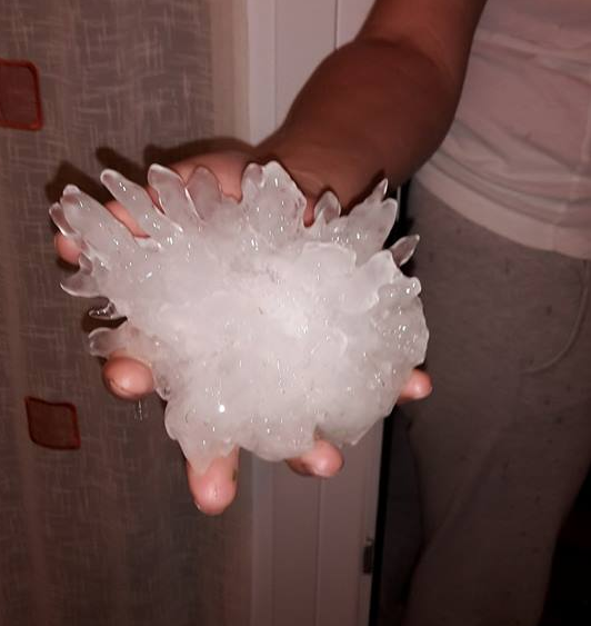 Deze kwam ik net op de Facebook van Severe Weather Europe tegen. Ik heb nog bekeken of ik de foto op Google tegenkwam bij het zoeken naar afbeeldingen van gigantische hagel (zoeken op basis van URL lijkt niet te werken bij foto's op Facebook), maar daar kwam ik hem niet tegen. Ik vermoed daarom dat hij daadwerkelijk in Roemenië is gevallen (veel stenen van dit formaat zul je natuurlijk ook niet kunnen tegenkomen op Google). Wat een gigantische steen is het, en voor zover ik weet is het de grootste die in Europa waargenomen is.
