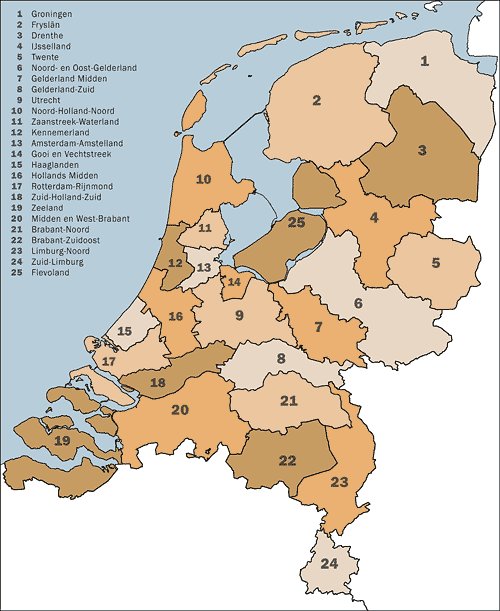 Kreizen, iets groter.. in Nederland zijn het COROP-gebieden