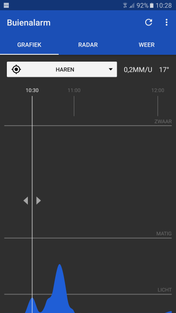 Misschien eens een ander appje (Buienalarm) proberen?