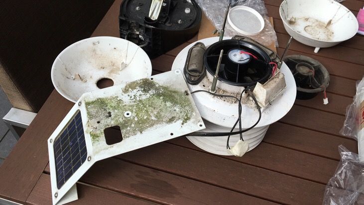 Aangezien het weerstation in Silvolde na 9 jaar allerlei storingen begon te vertonen heb ik de ISS van dit station afgelopen winter vervangen. Daardoor heb ik wat reserve-onderdelen en met de aanschaf van nog een paar onderdelen heb ik nu een reserve Davis Vantage Pro2. Dat bleek vandaag dan wel weer handig te zijn. Het schoonmaken kostte me toch al gauw een uurtje of 2 en dan ga ik in de loop van de week het bouwpakket weer in elkaar zetten. Wat me verder is opgevallen is dat de RVS-schroeven nog in uitstekende staat zijn (na ruim 5 jaar). Wat me tegenvalt is dat het kunststof van het weerstation toch wel flink verweerd is en niet echt meer wit te krijgen is.