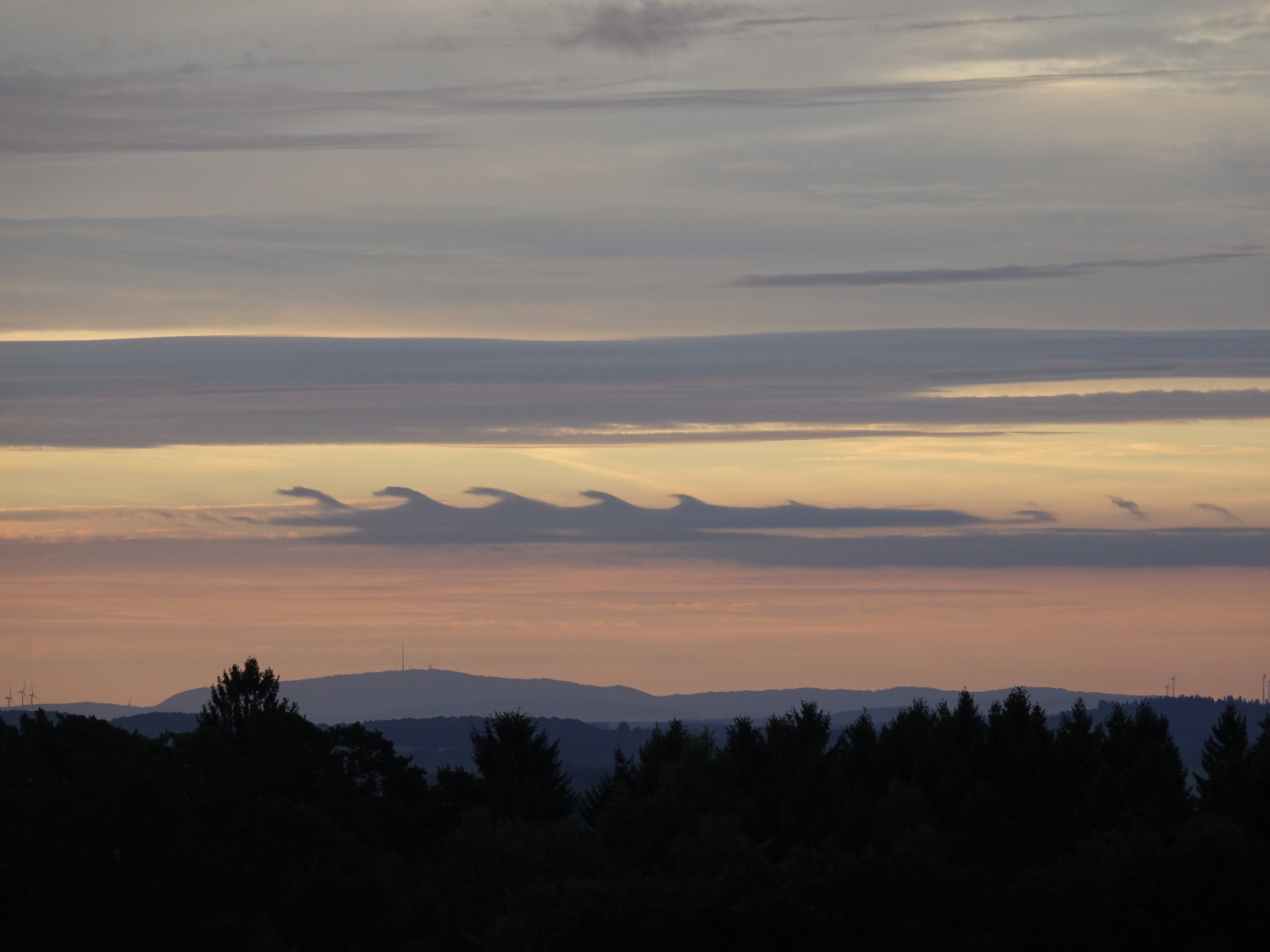 Terug van drie weken vakantie in Midden-Duitsland wil ik deze toch wel even met jullie delen. Voor de tweede keer in mijn leven Kelvin Helmholtz wolken gespot. (18-8) Ook dit keer vlak na zonsopkomst, ter hoogte van Idar-Oberstein in de Hunsrück. Zo snel ze er opeens waren, zo snel gingen ze nog geen 5 minuten later ook weer weg.