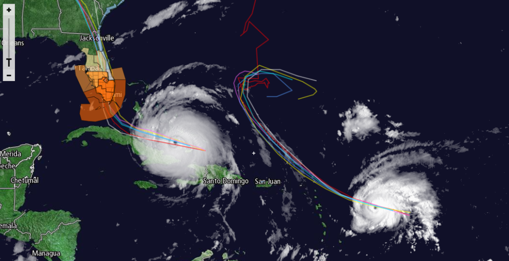 Orkaan Andrew (1992) veroorzaakte toen een geschatte schade van 27 miljard dollar. Ik plaats even een overlay van de satellietbeelden van Irma en Andrew zodat de omvang van de huidige orkaan kan ingeschat worden.