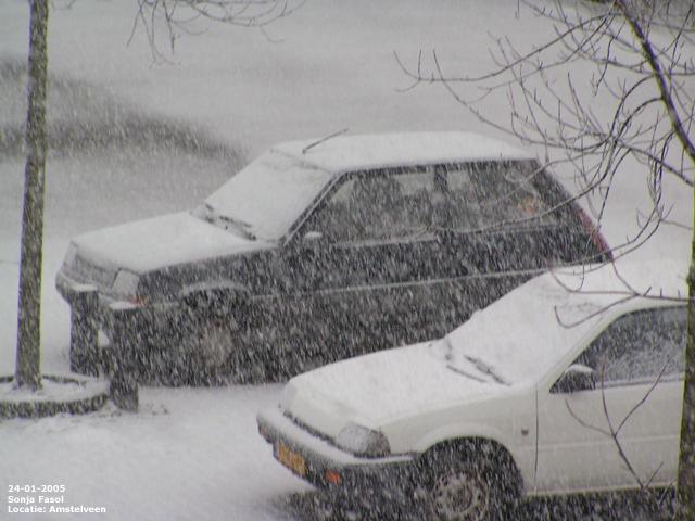 Begin van de middag werd Amstelveen bezocht door een pittige sneeuwbui, waarbij het tijdelijk zeer hard sneeuwde met zeer slecht zicht (foto 3)