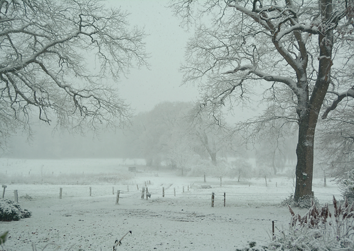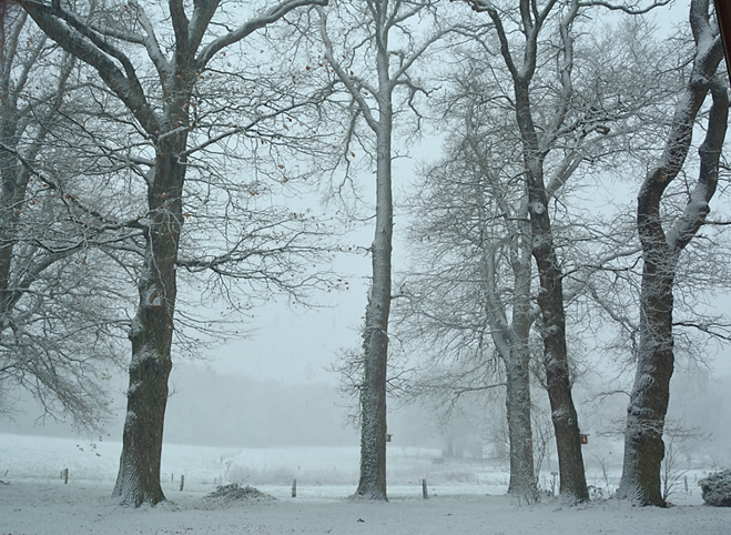 En opeens is het hier wit!. en nu door sneeuwen. Tact: 0.3°C.