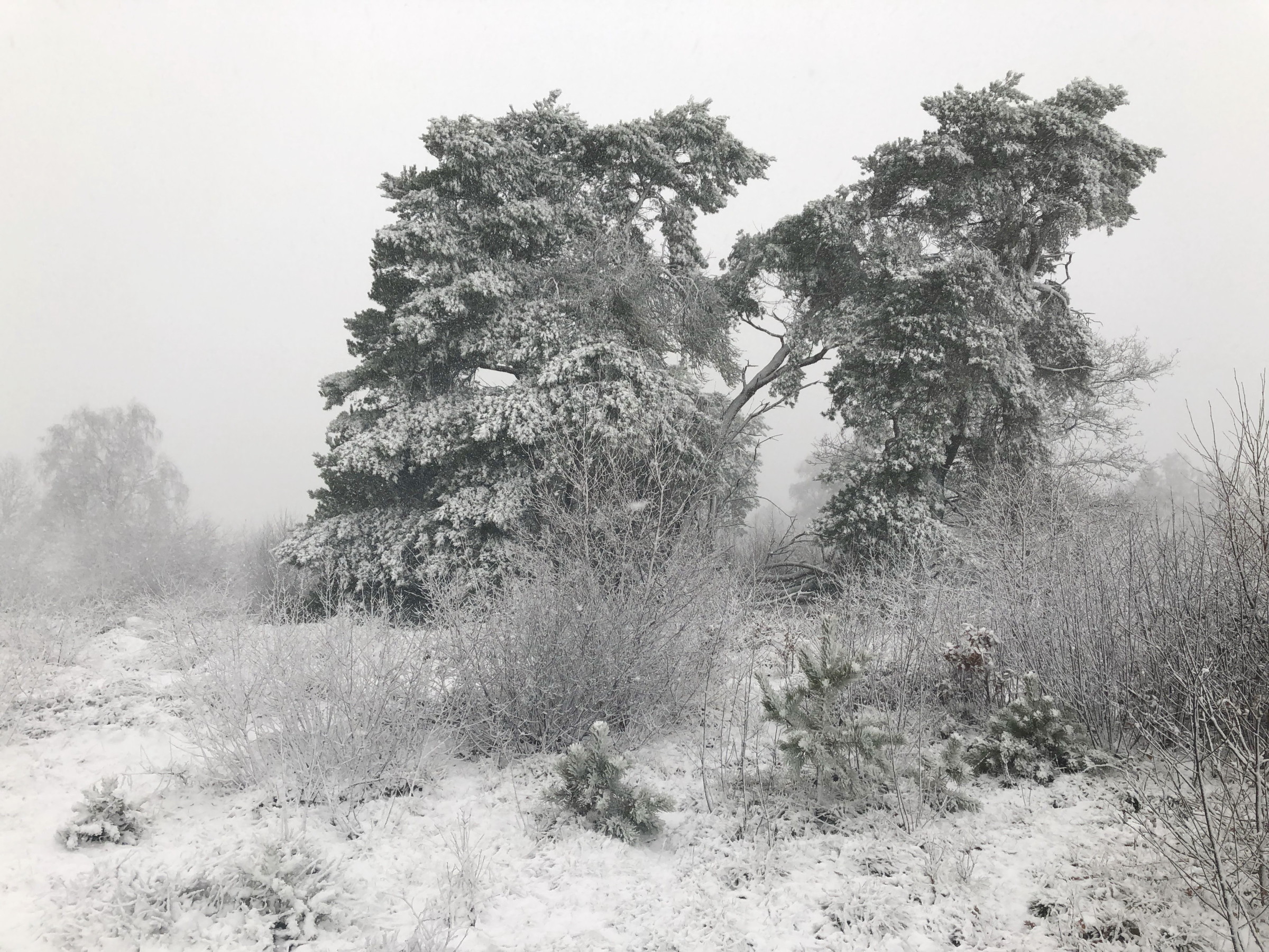 Sommige bomen hadden het moeilijk met zo'n vracht sneeuw.