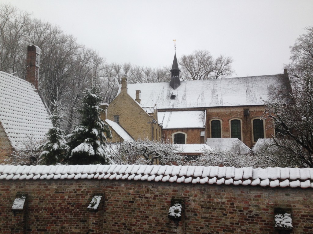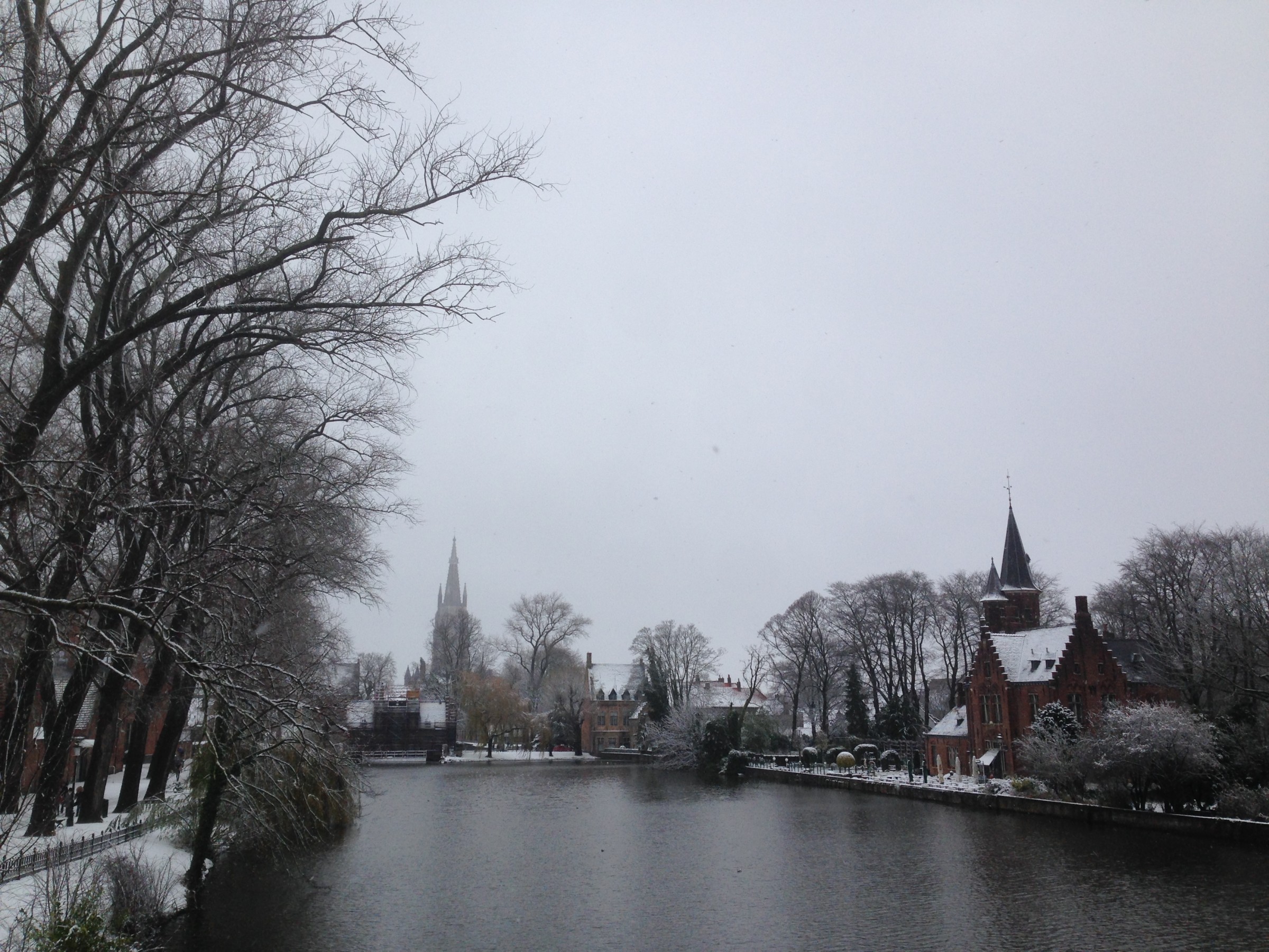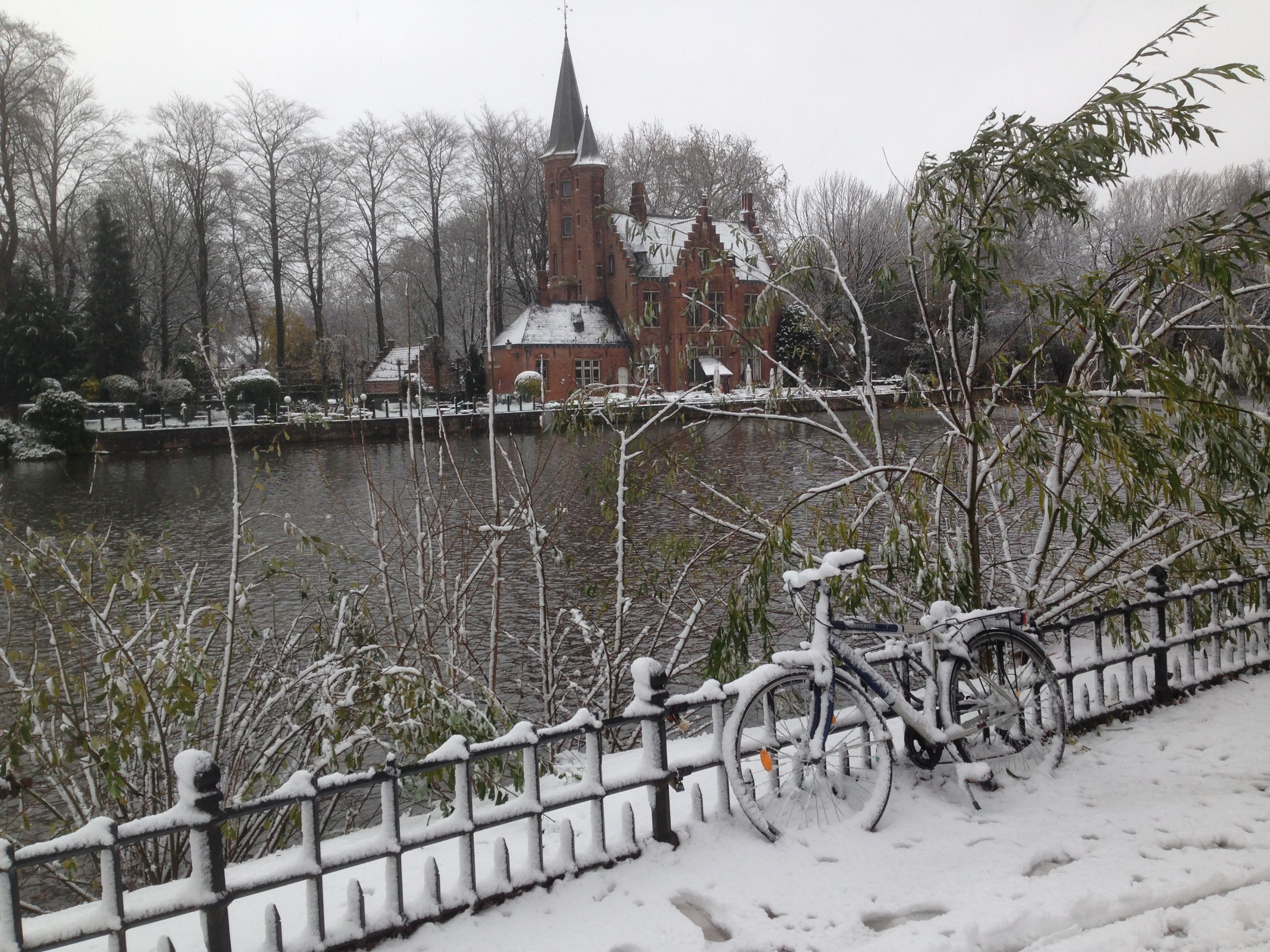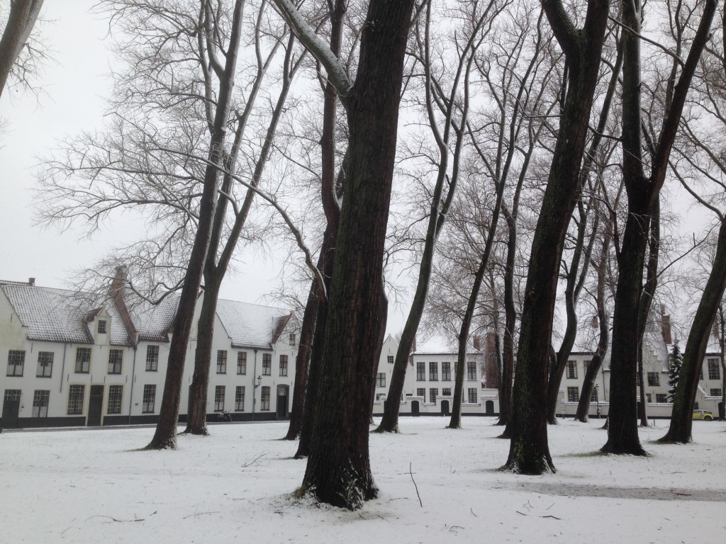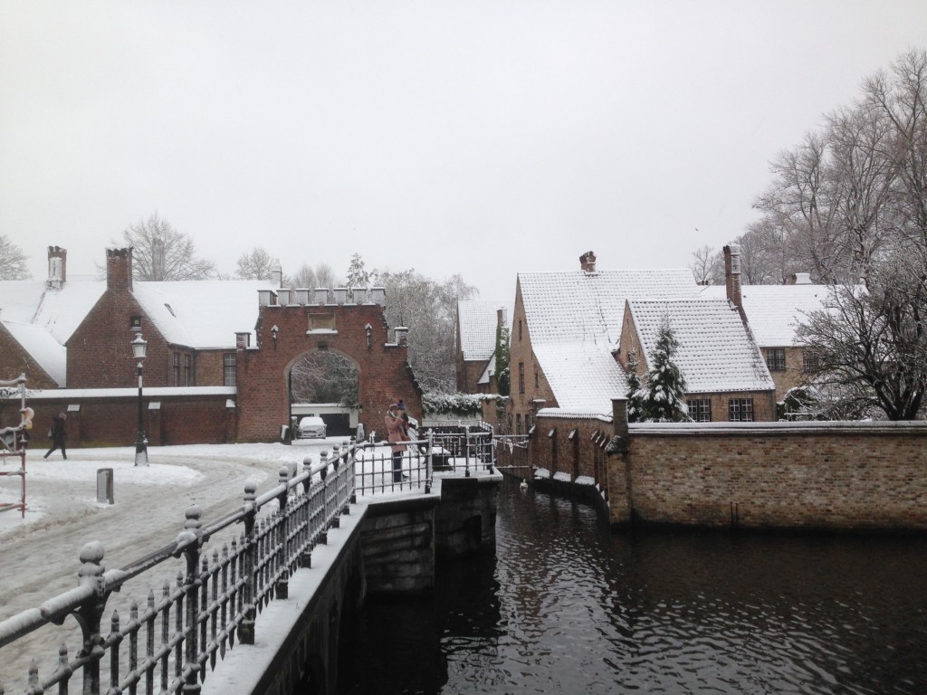 Fotoreeksje uit Brugge. Na 15' droog, opnieuw sneeuwval. Aan zee is