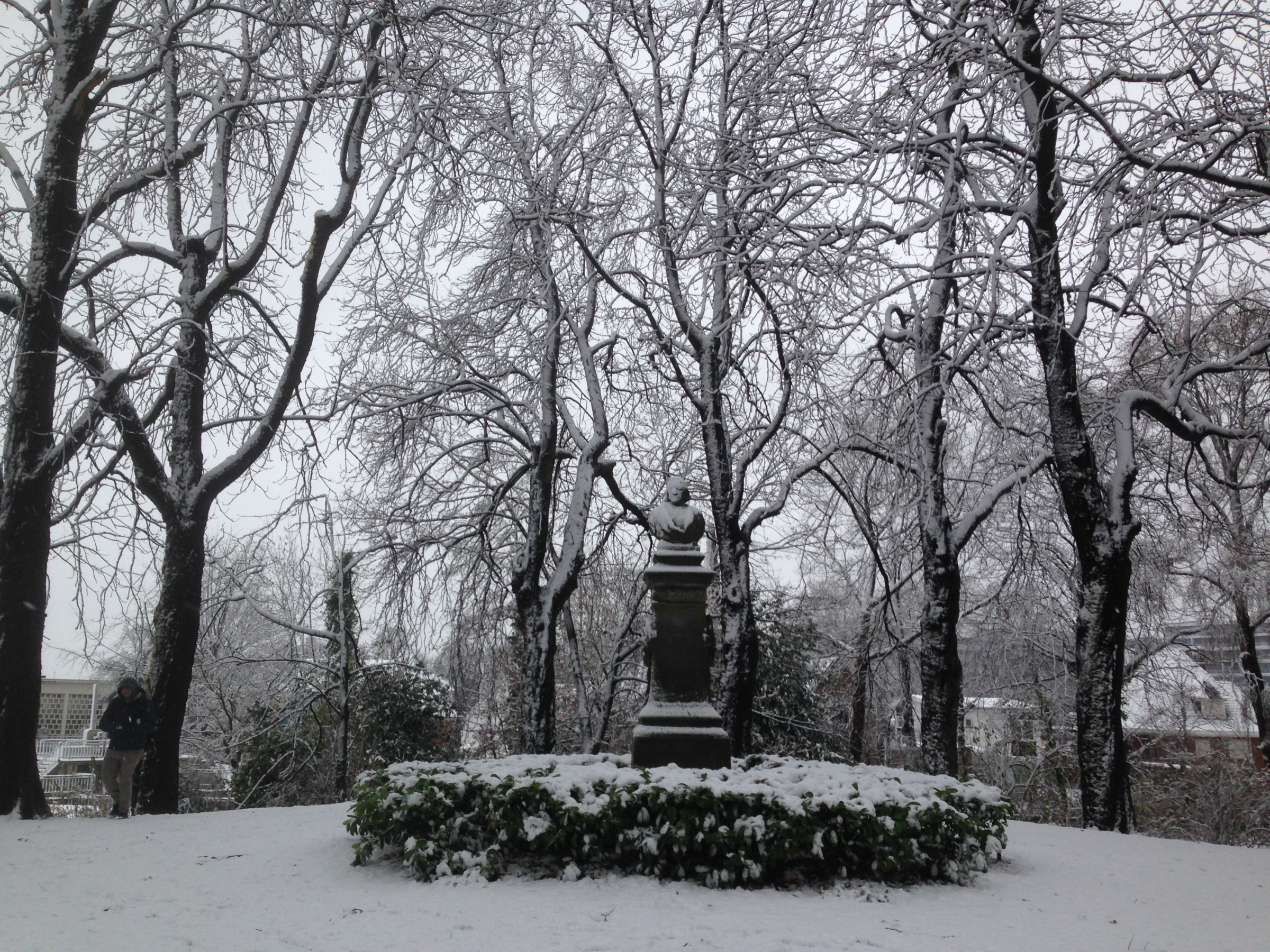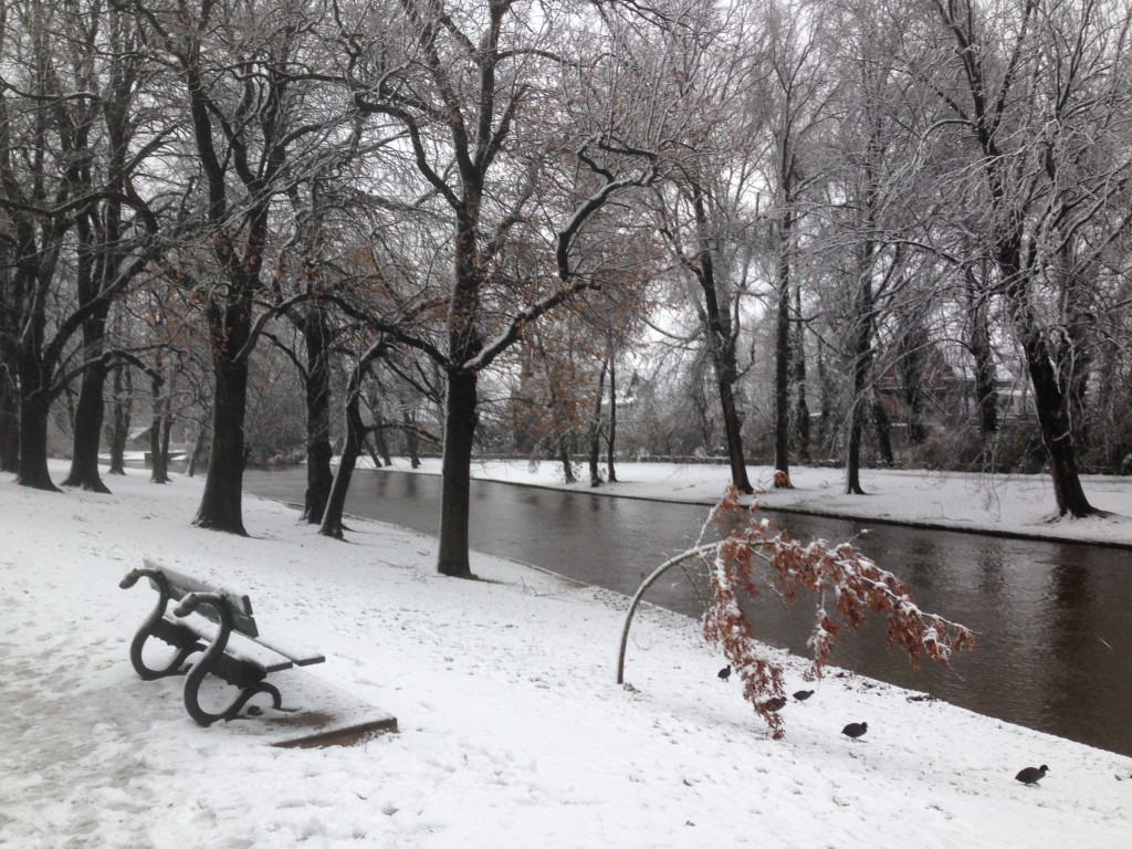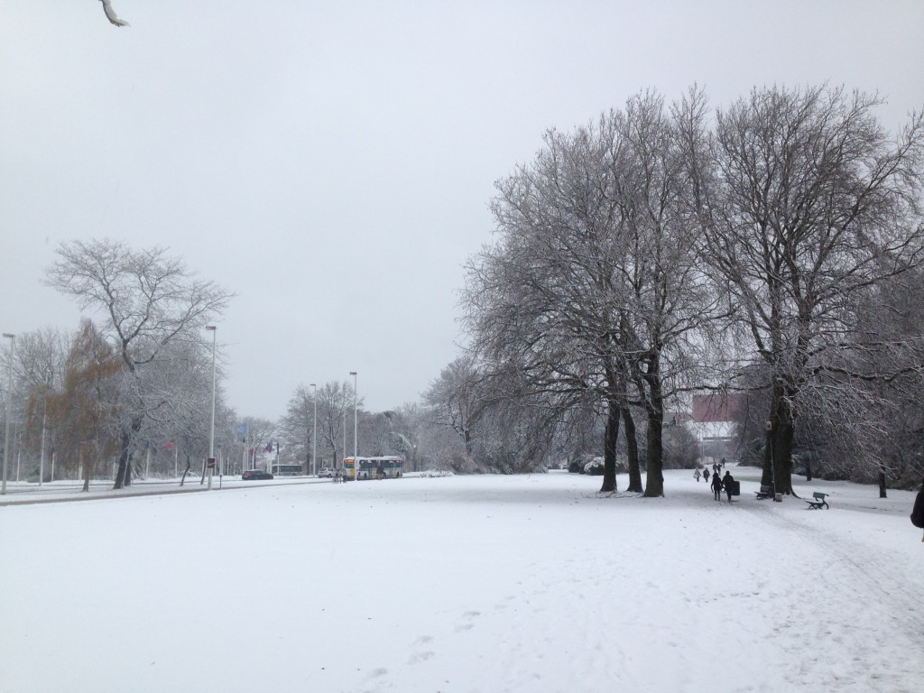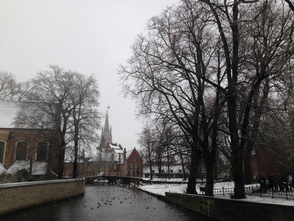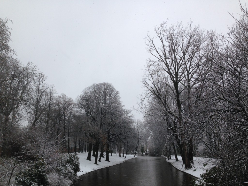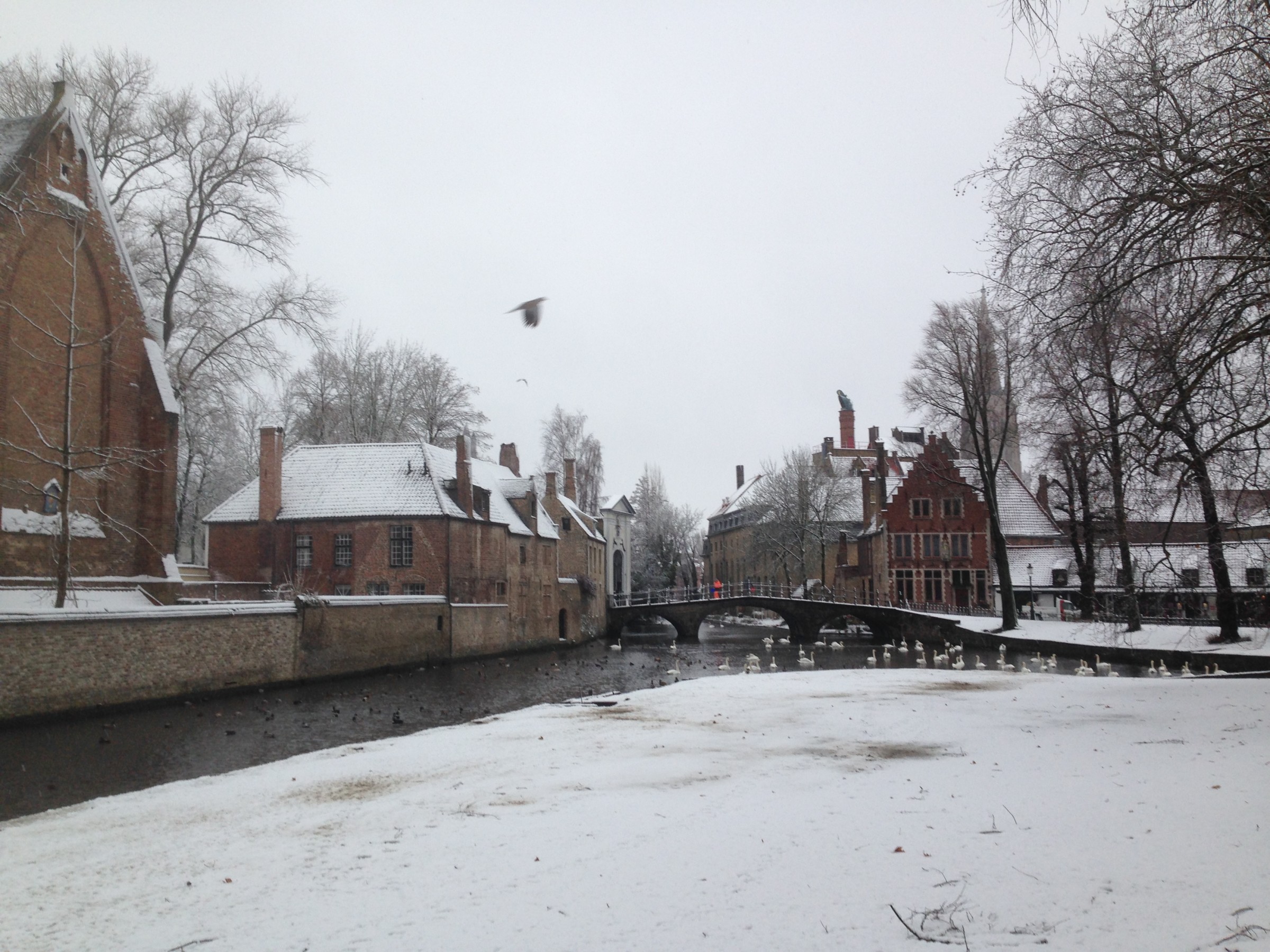 Fotoreeksje uit Brugge. Na 15' droog, opnieuw sneeuwval. Aan zee is
