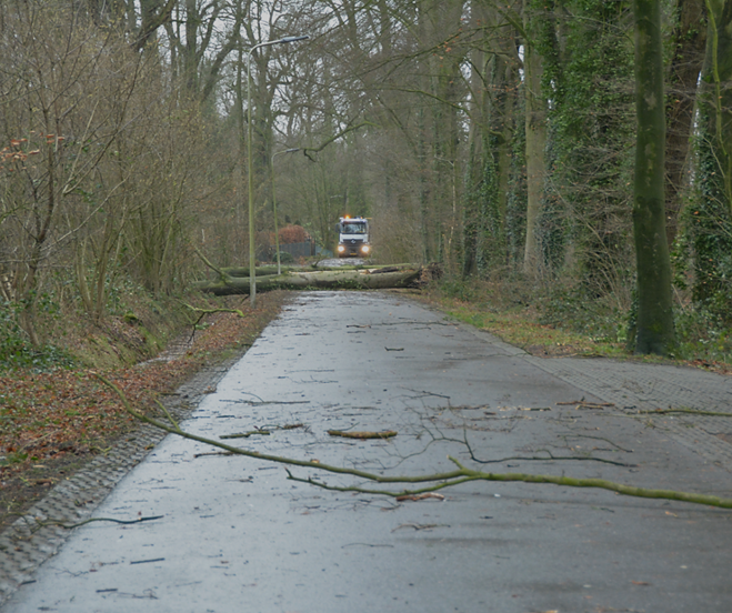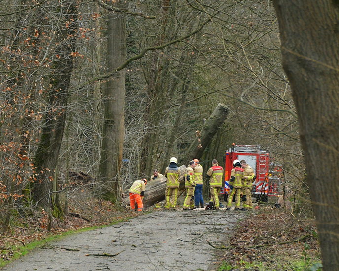 Vanmiddag de brandweer nog geholpen om een weg die bezaaid lag met bomen vrij te zagen
