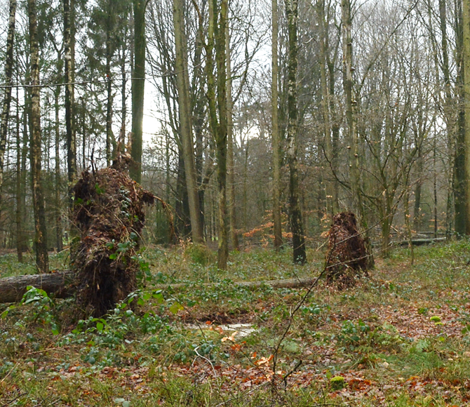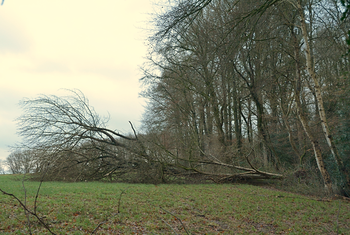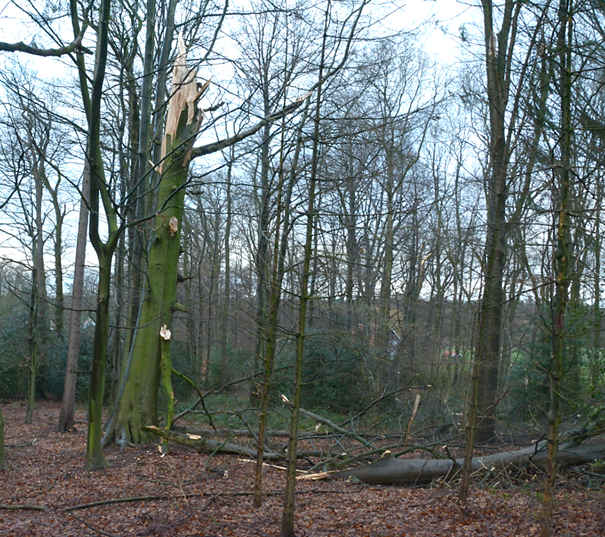 Hier in de buurt zijn tientallen, zo niet honderden bomen gesneuveld helaas. Van grote beuken/eiken tot vooral veel naaldbomen. Je kunt wel duidelijk zien dat de ondergrond zeiknat is. Dat heeft natuurlijk geholpen bij het omwaaien.
