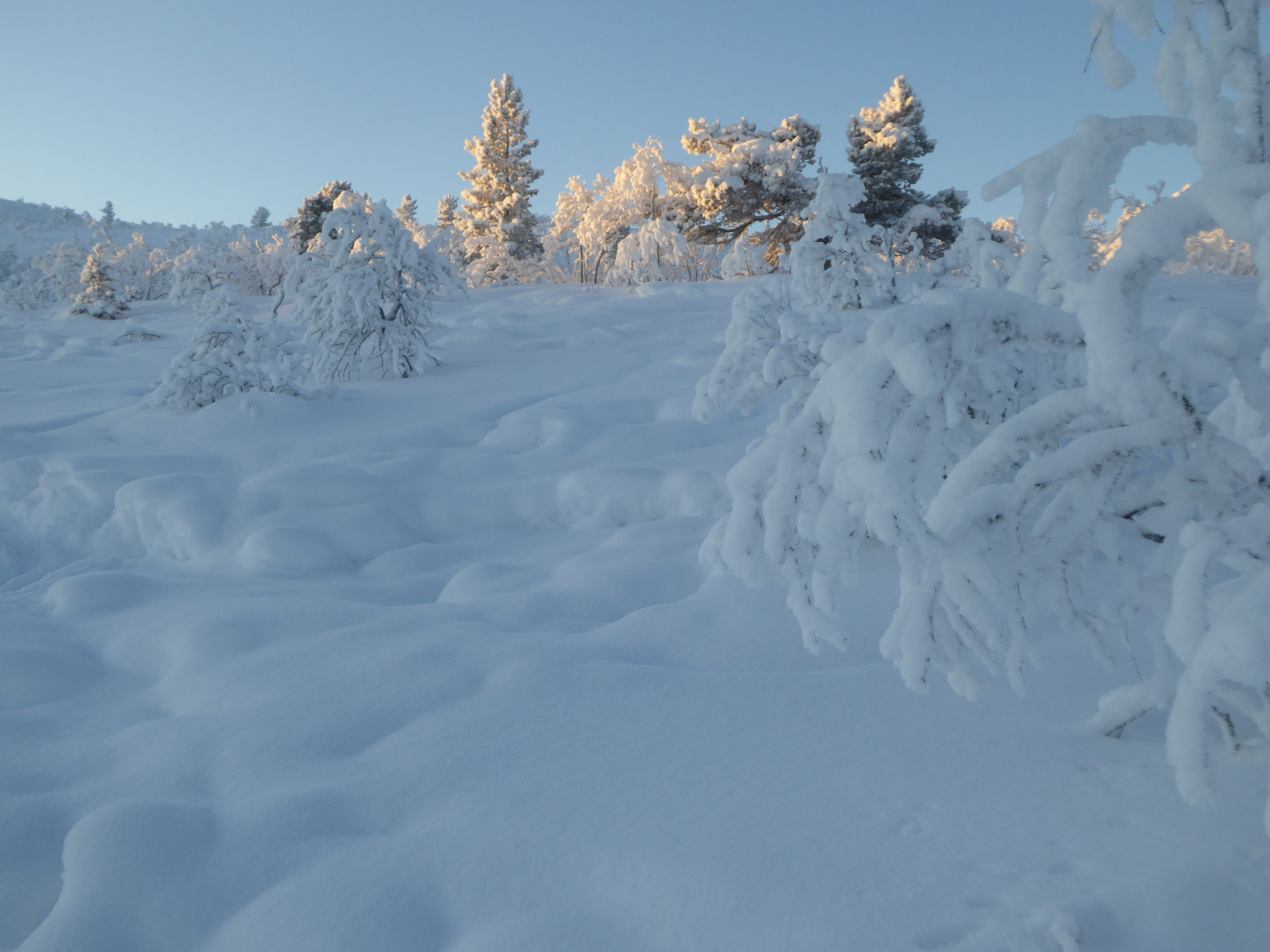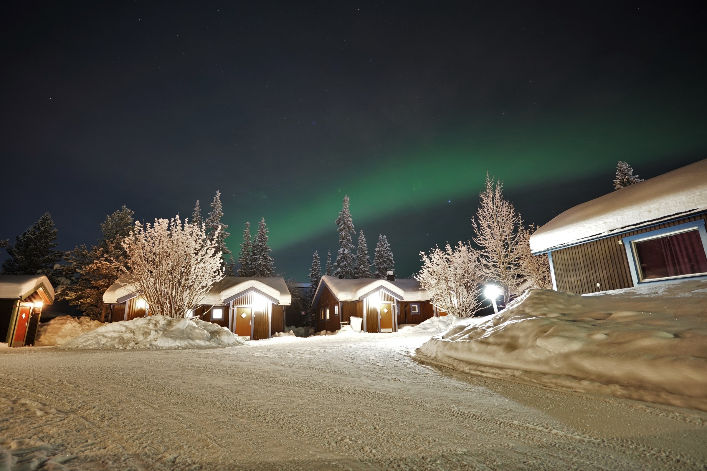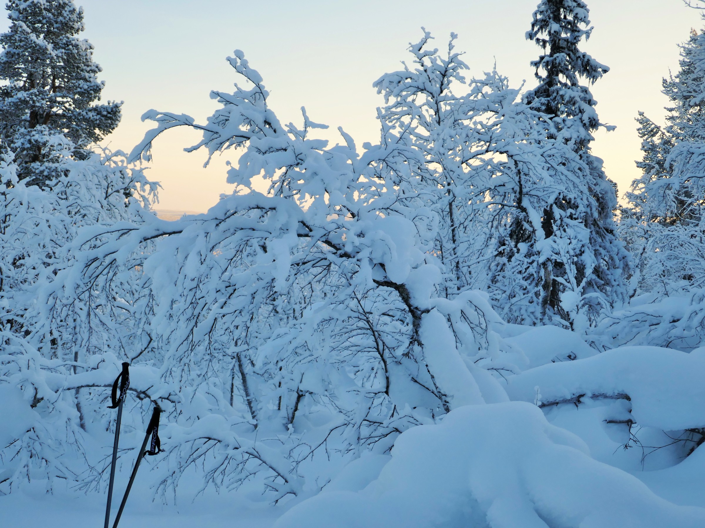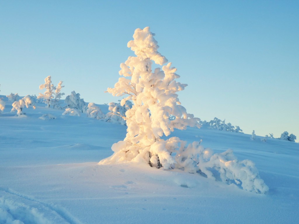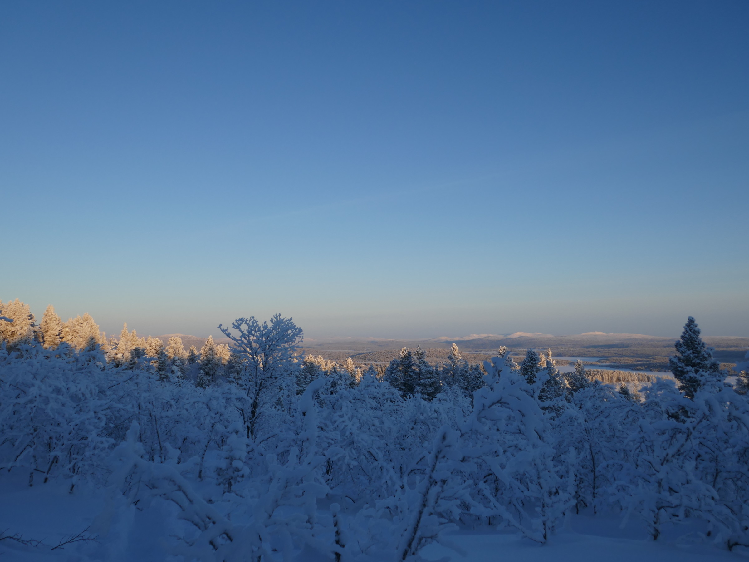 We kwamen aan vanuit Stockholm (glory kunnen spotten vanuit het vliegtuig) bij -25°, gelijk naar het ijshotel waar we een warme nacht en een koude nacht hadden geboekt. De koude nacht is slapen bij -5° in een kunstig gemaakte ijsgrot. 's Avonds werden we al getrakteerd op Noorderlicht, dat op- en afging. De volgende nacht vroor het -32° en gingen we sneeuwschoenwandelen de heuvel op: een heerlijke gewaarwording met bevriezende neushaartjes, wimpers en vingers bij het fotograferen.