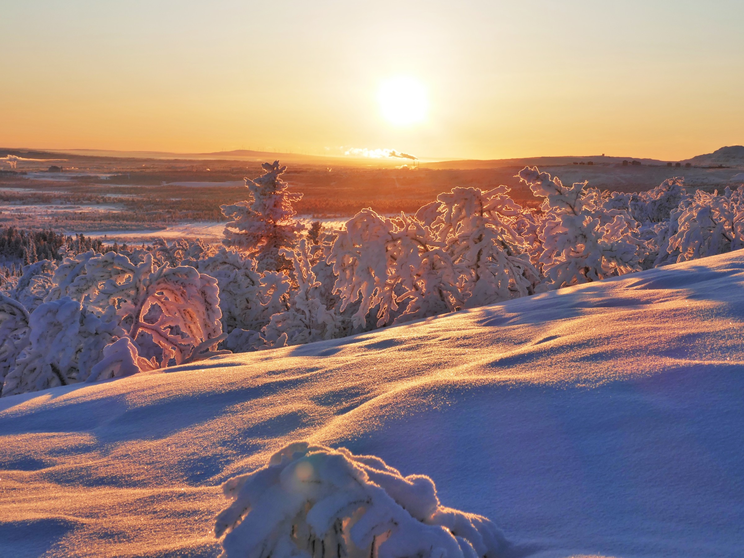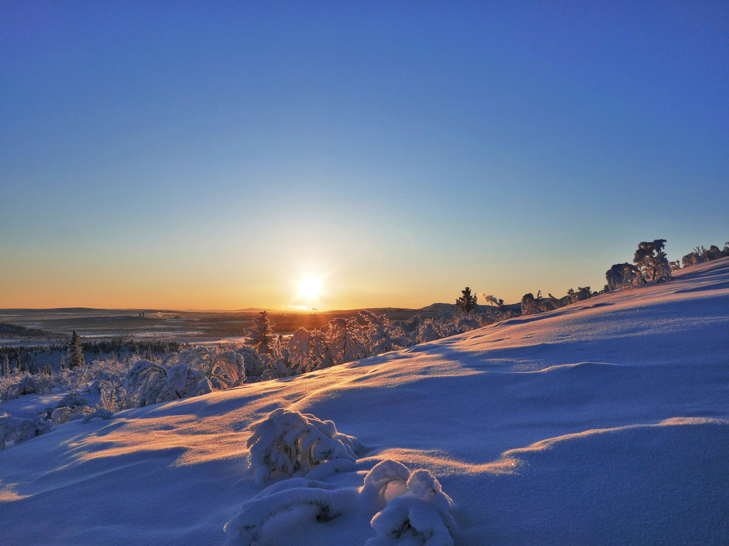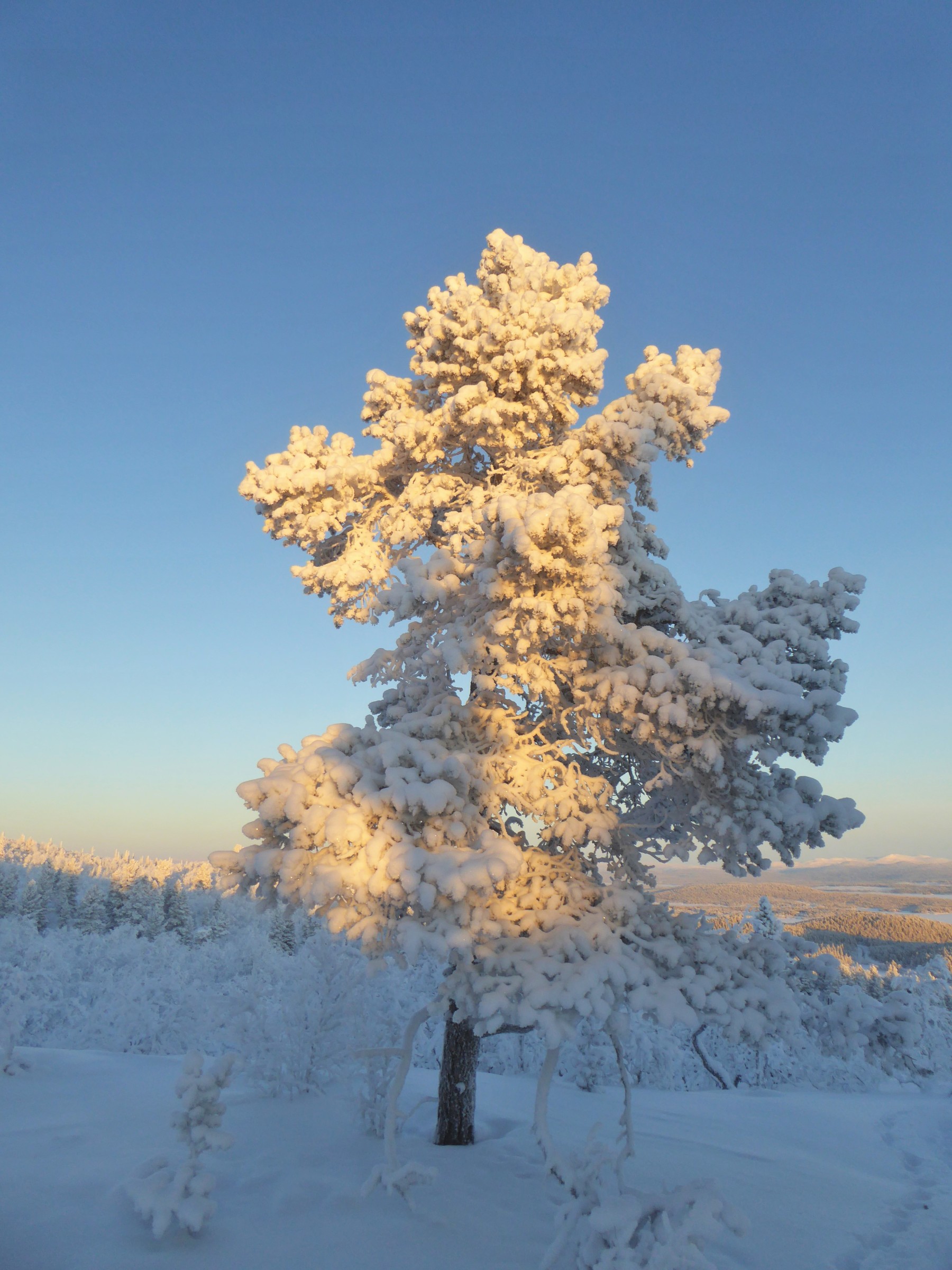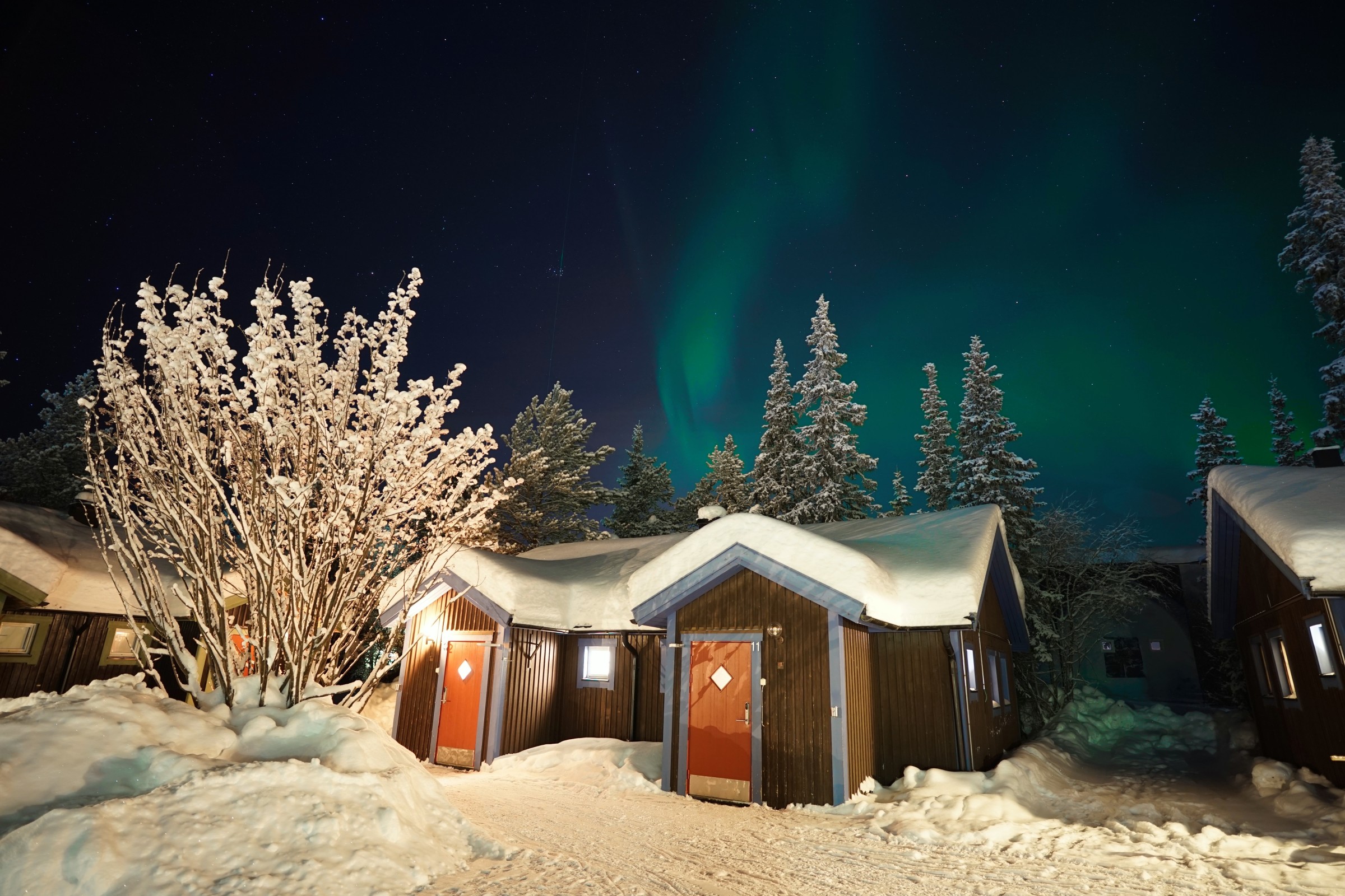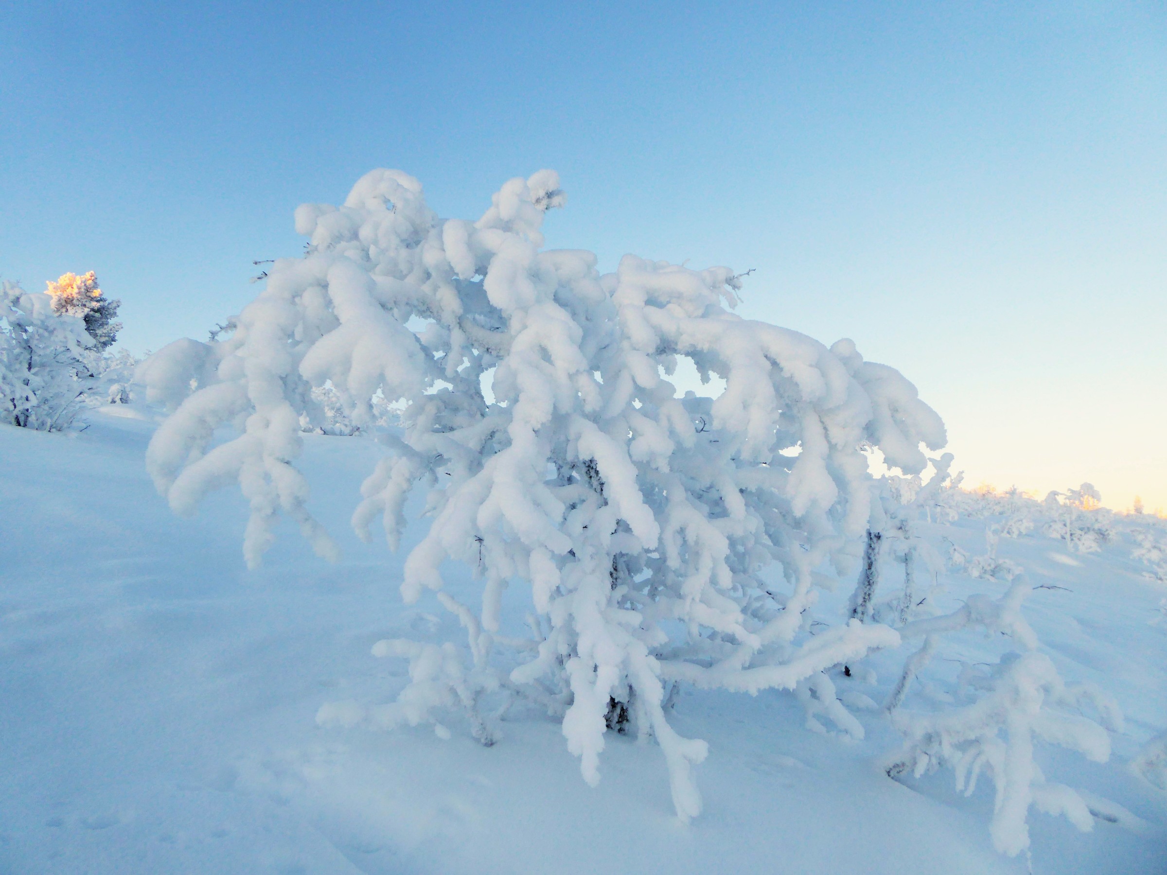 We kwamen aan vanuit Stockholm (glory kunnen spotten vanuit het vliegtuig) bij -25°, gelijk naar het ijshotel waar we een warme nacht en een koude nacht hadden geboekt. De koude nacht is slapen bij -5° in een kunstig gemaakte ijsgrot. 's Avonds werden we al getrakteerd op Noorderlicht, dat op- en afging. De volgende nacht vroor het -32° en gingen we sneeuwschoenwandelen de heuvel op: een heerlijke gewaarwording met bevriezende neushaartjes, wimpers en vingers bij het fotograferen.