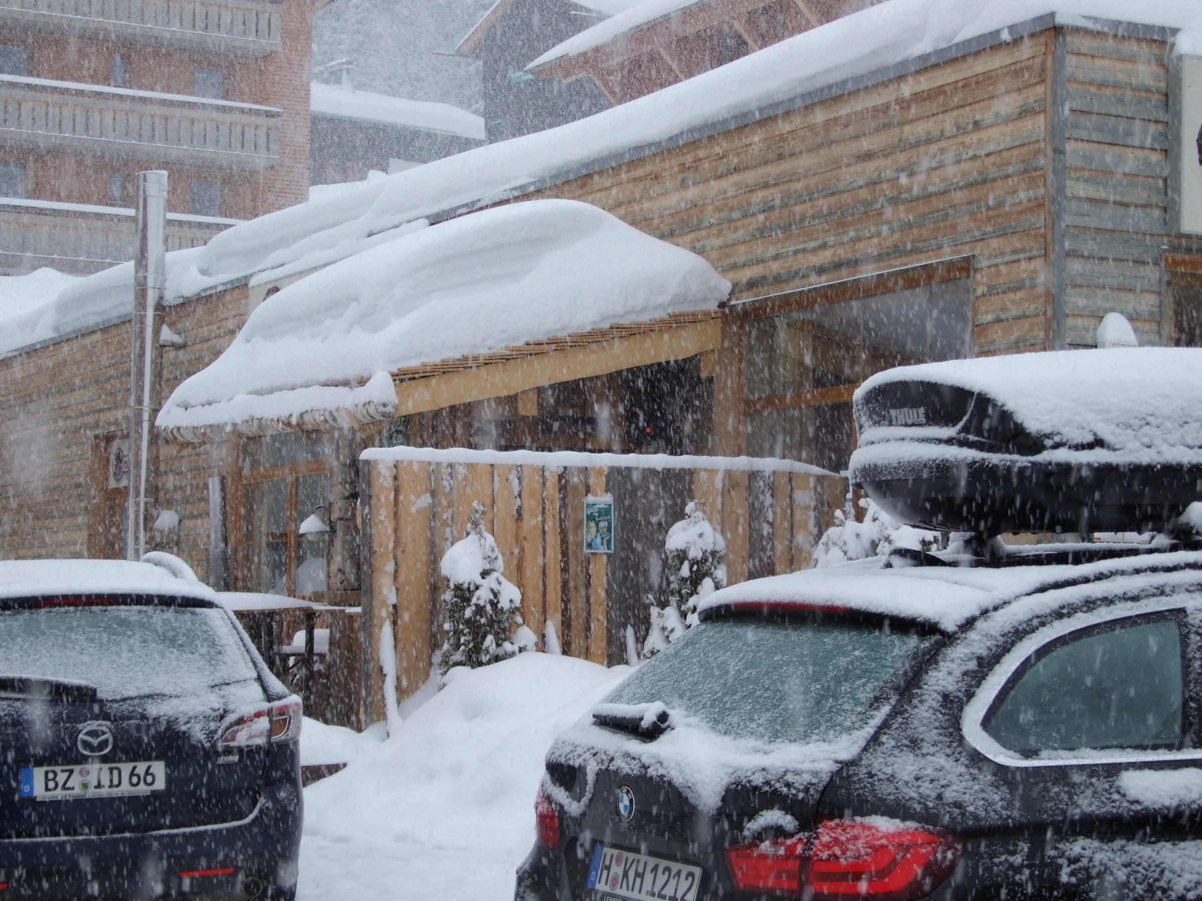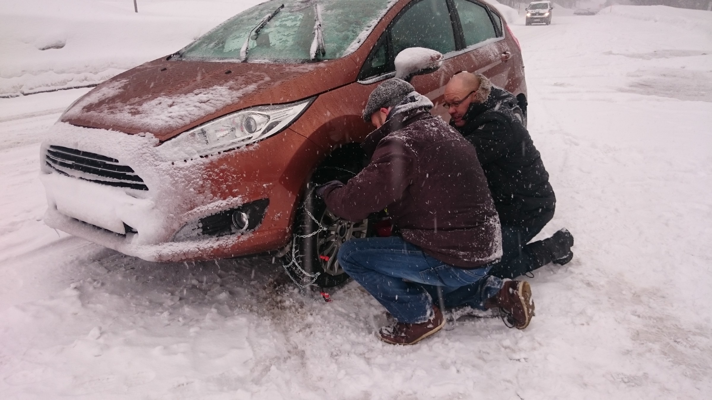 Onderweg op de weg al veel mensen bezig met kettingen en wij hebben het toen kunnen halen tot aan Gargellen, lang leve de winterbanden