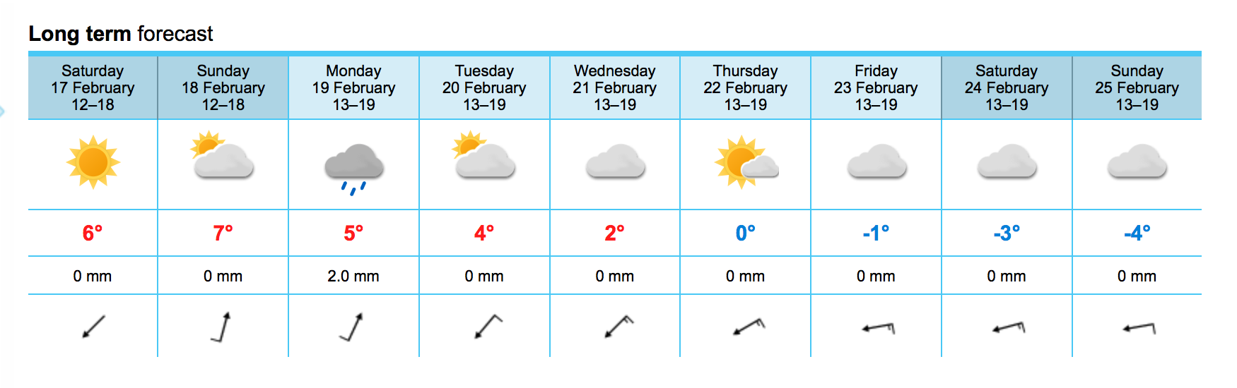 Als ik kijk naar zaterdag, zie ik de oper op 0 staan in de pluim. Als je echter kijkt naar de laatste yr.no uitvoer voor zaterdag, dan zie ik -3 voor Jabbeke. Iemand enig idee?