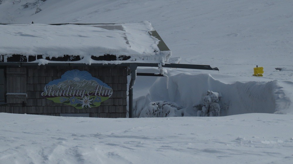 Bij de Steinlingalm (luttele 1425 m, maar wel -15°C, ongeveer) waren we dankbaar voor een warme hap (en de accu voor wat thermische eenheden). Nadien konden er foto´s genomen worden: