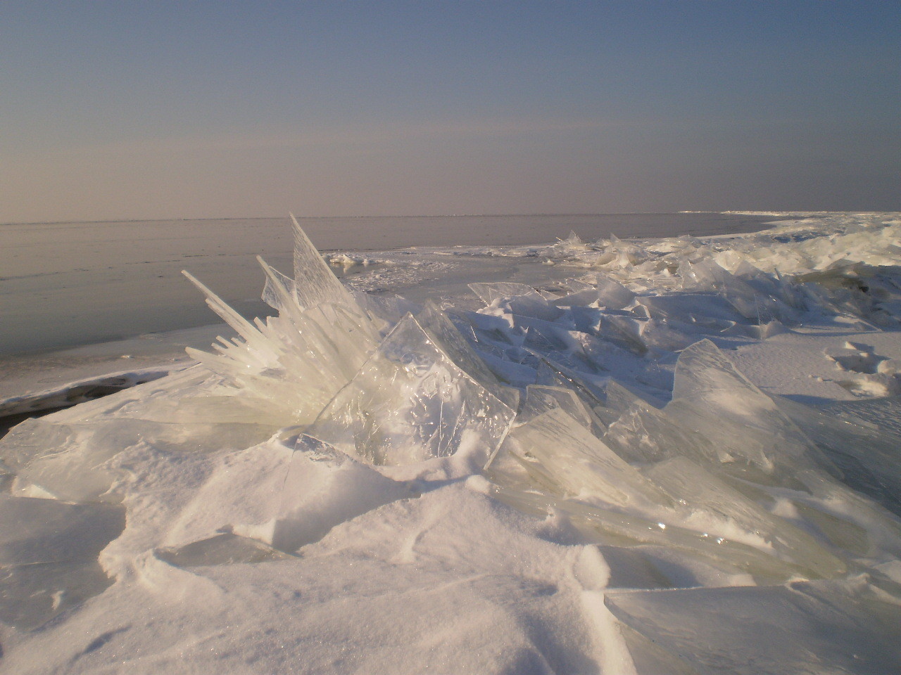 Door het werken/bewegen/botsen van het ijs krijg je ophopingen. Niet te verwarren met kruiend ijs.
