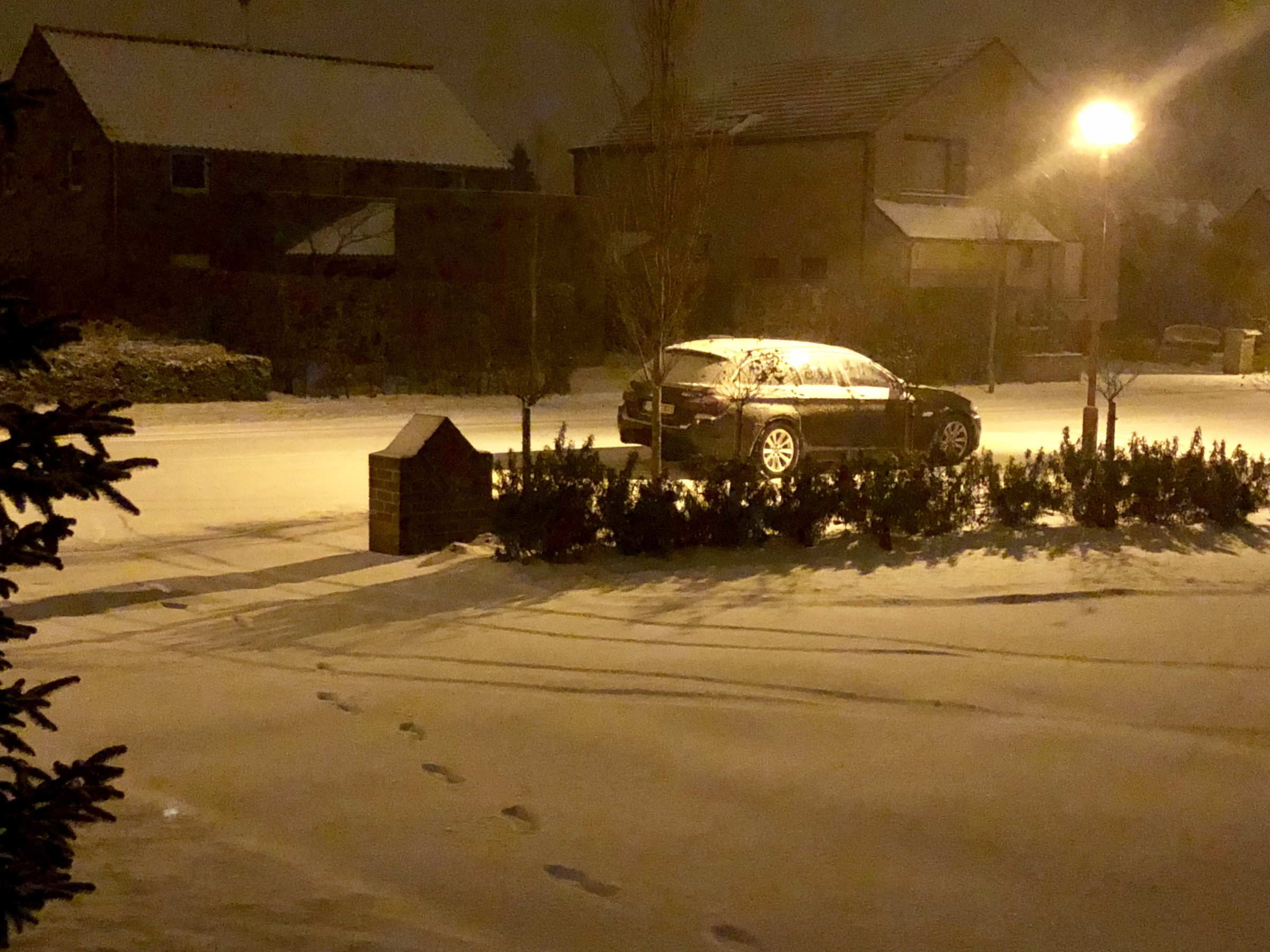 en nog altijd lichte sneeuwval. Het sterft hier boven ons hoofd uit