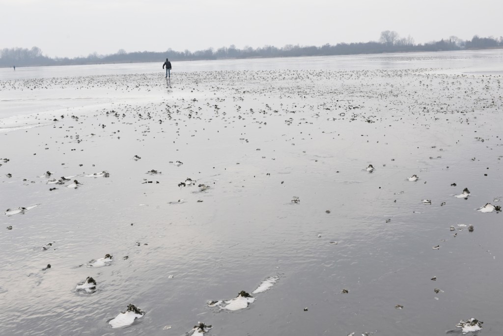 Het ijs was niet heel mooi maar aan de oostkant waar ook de wakken waren had je stukken met mooi zwart ijs, wel veel vogelpoep hier en daar. Aan de westkant was het ijs wat hobbeliger.