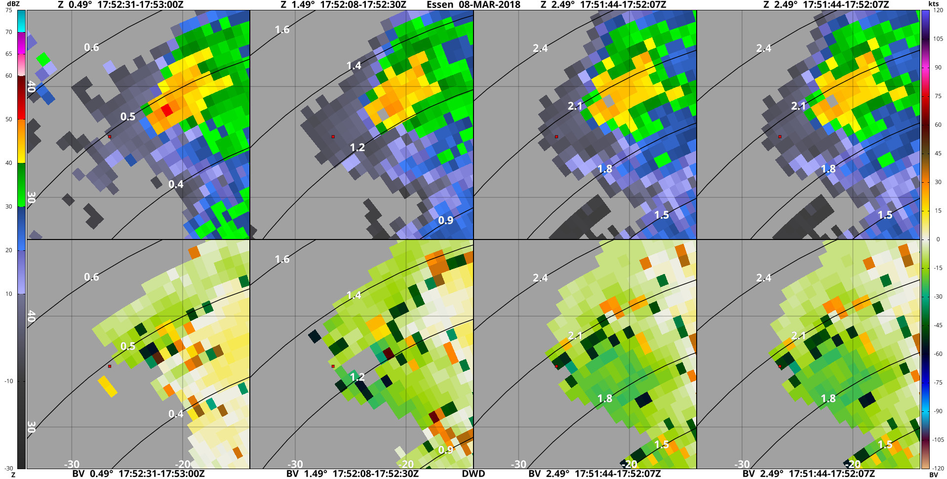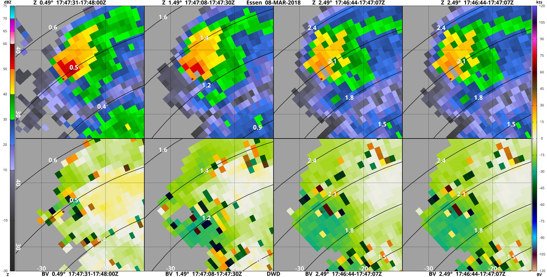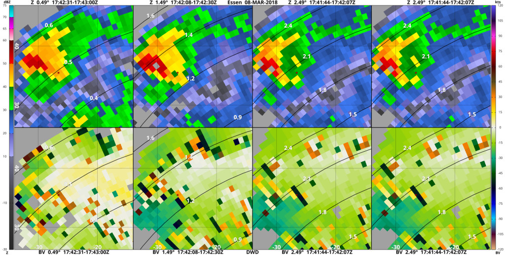 Op basis daarvan lijkt een tornado me erg waarschijnlijk. De radarbeelden van Essen hieronder laten verder de passage van een supercell zien.