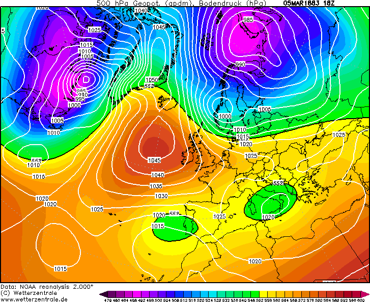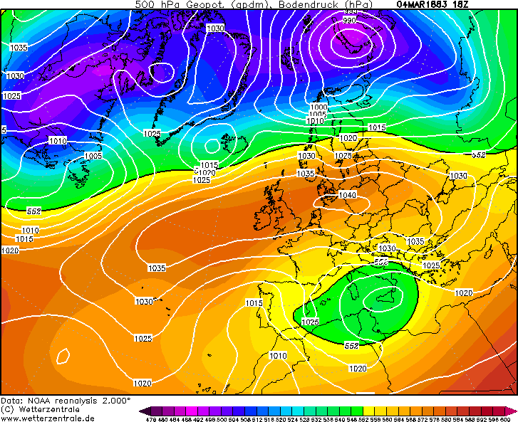 Op 4 maart nog geen vuiltje aan de lucht en een hogedrukgebied in de buurt. Heel stabiel weer dus.