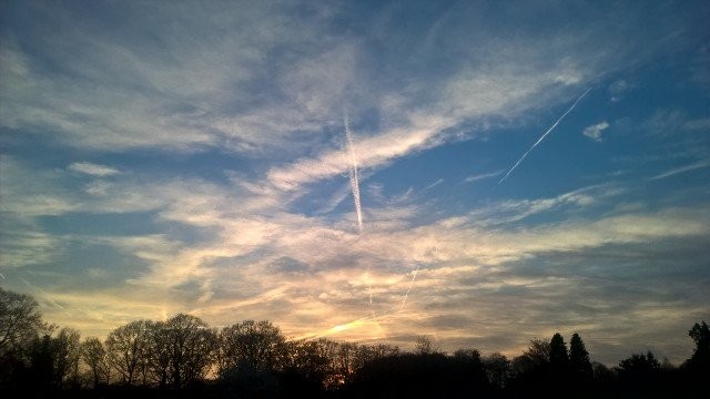 Van iets voor de eigenlijke zonsondergang. De lucht was gedurende de zonsondergang ook mooi, maar ik was tv aan het kijken (en wilde daarvan zo min mogelijk missen - dus heb alleen een paar keer uit het raam naar de lucht gegluurd).