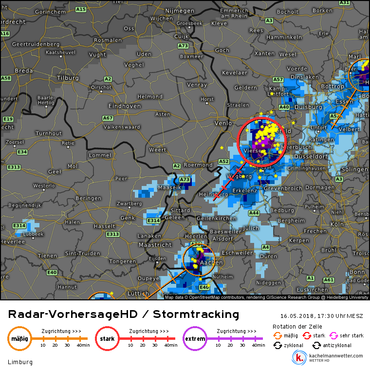 Met een opvallende rechtse afwijking als je de KMI radar bekijkt.