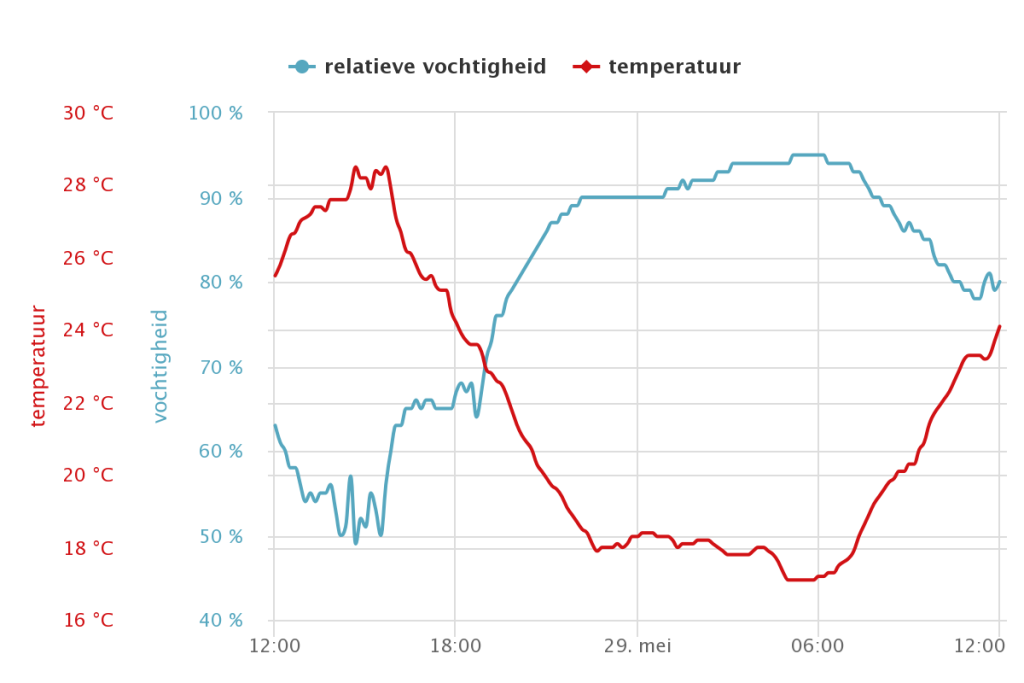 Hier loopt de Tact 1,5C achter maar de luchtvochtigheid alles behalve.