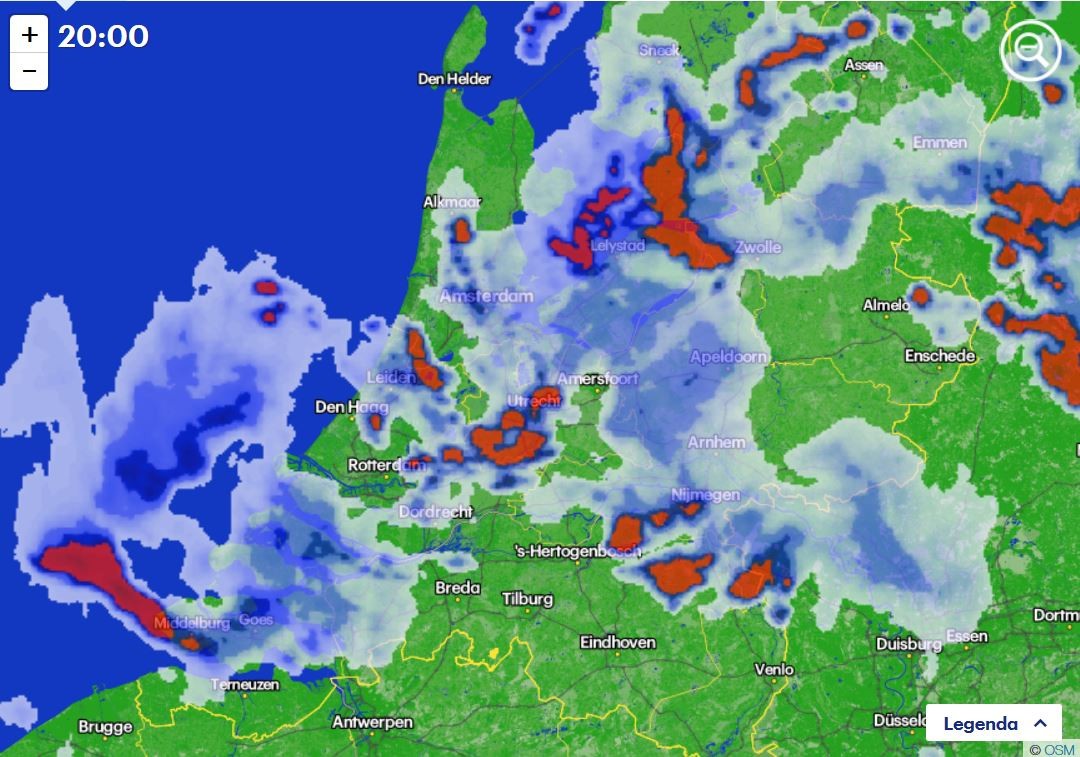 Prachtig om te zien hoe die buien steeds verderop weer nieuwe buien triggeren door de outflow, en zelf er de brui aan geven. Totaal onvoorspelbaar. Het begint hier weer te donderen richting het noordoosten, op de radar onstaan allemaal nieuwe pitten (getriggerd door de bui bij Flevoland via Utrecht/rivierengebied?).
