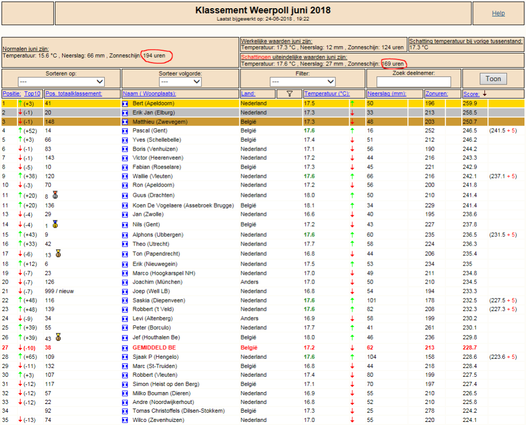 Heb voor de gelegenheid de Weerpoll even bijgewerkt met de cijfers tot en met 23 juni (dus vandaag is niet meegenomen).