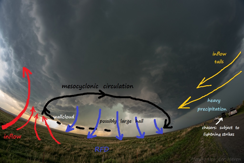 Op de vorige foto zijn een aantal duidelijke kenmerken van een supercell te zien: