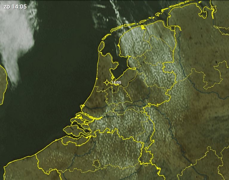 In alle weerberichten en volgende modellen zou het vandaag een stralend zonnige dag worden. In werkeljkheid is het al aan aantal uren half tot soms zwaar bewolkt met af en toe flink uitsmerende cumuli. Wat triggert deze bewolking?