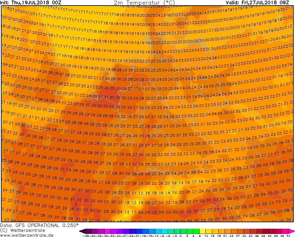 Toch weer een behoorlijk andere run waarbij de 35 graden voor vrijdag niet gehaald gaat worden. 12z en 18z waren beiden snoeiheet. Gemiddelde in 18z ens lag iets lager dan in het 12z ens. Er is dus nog niks besloten over eventuele recordhitte. Warm wordt het sowieso wel maar de kustgebieden zullen toch een stuk koeler blijven mocht deze Oper gelijk krijgen.