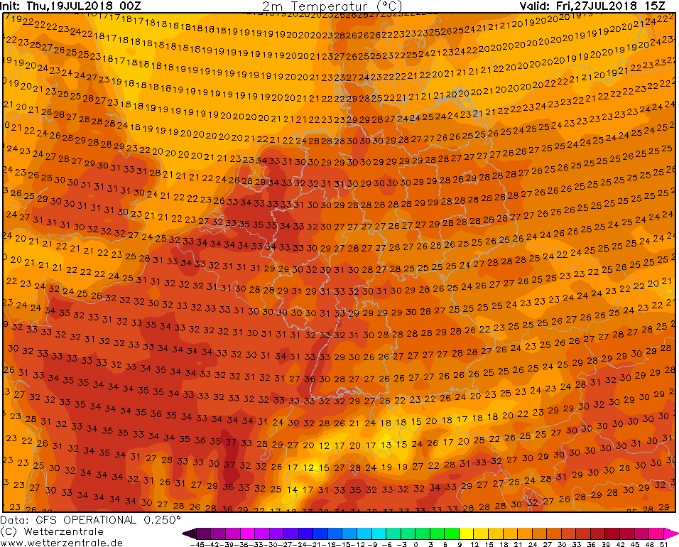Vrijdag wel degelijk 35 graden. Maar voor die tijd sowieso een stuk minder heet. Na vrijdag toenemend onstabiel.