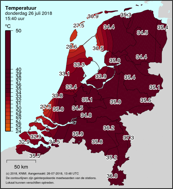 Humor van het KNMI: 40-50 graden dezelfde kleur