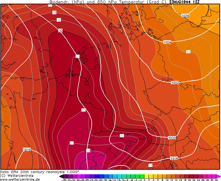 De 20ste eeuw heranalyse van het ECMWF laat temperaturen tot 21 graden zien over Nederland: