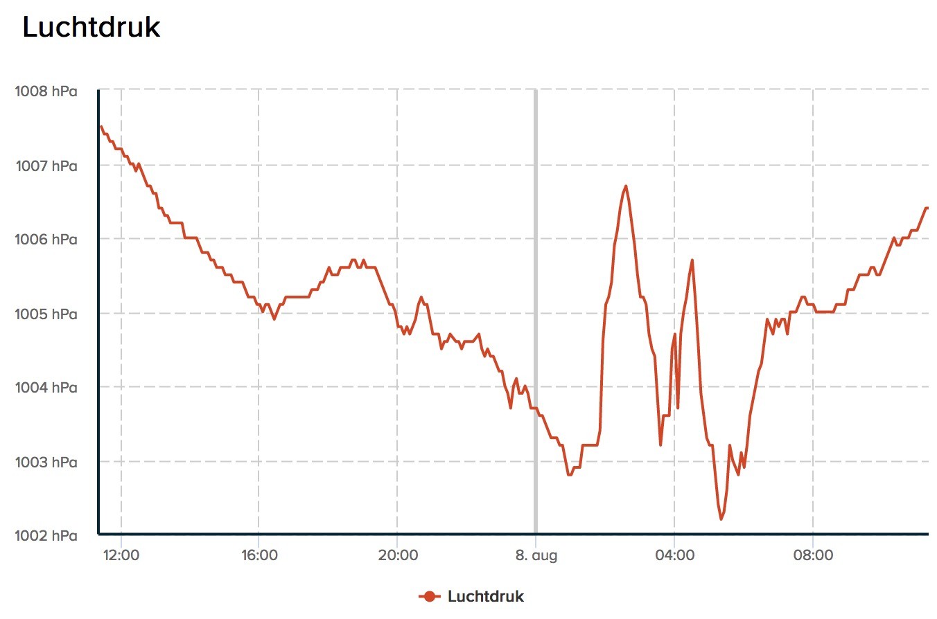 Het was net een achtbaan afgelopen nacht met de luchtdruk: omhoog, omlaag, omhoog, omlaag en weer omhoog.