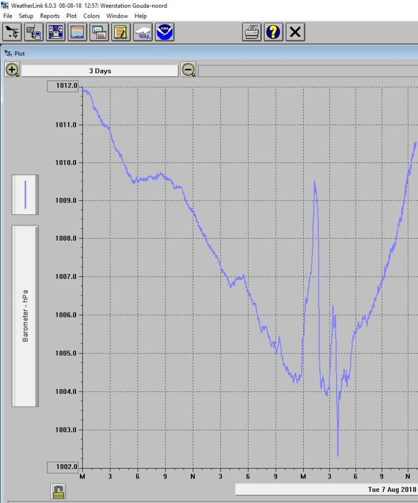 De eerste was een zeer forse, circa 5,5 hPa in korte tijd.
