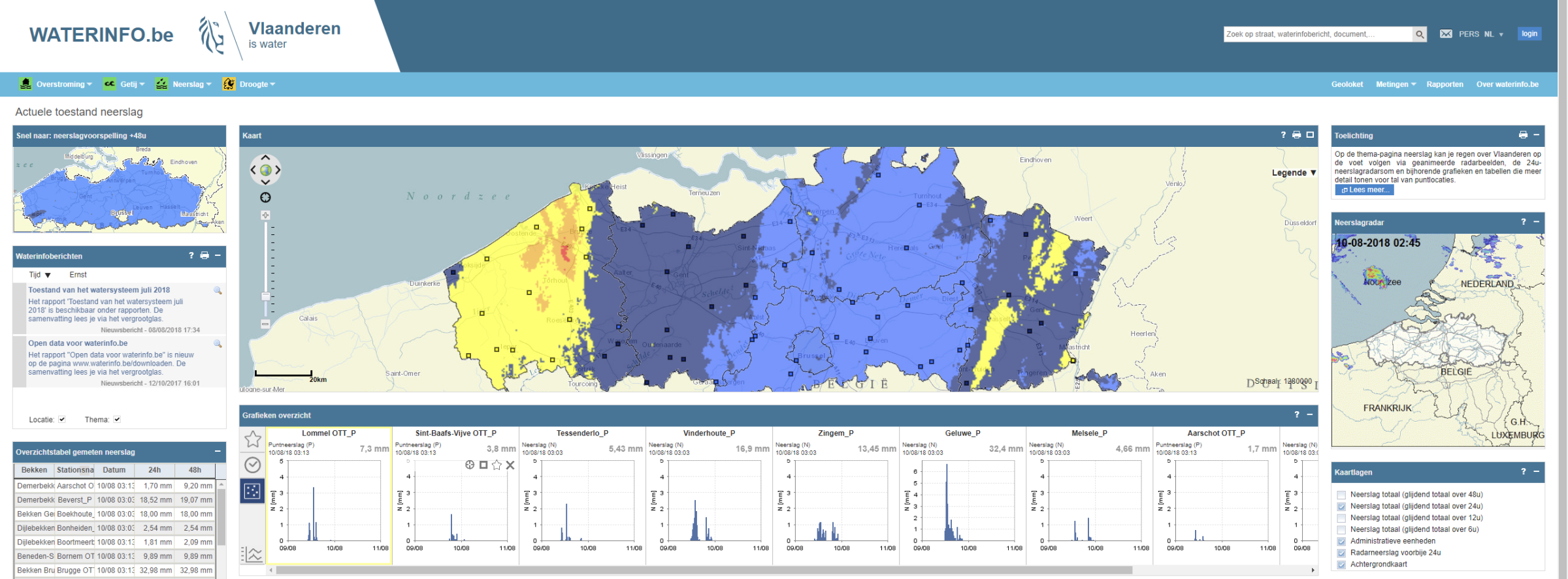 Zie hieronder schermafdruk. De gele gebieden oost van Brugge hebben respectievelijk 32mm (N) en 26mm (Z). Dan is er nog oranje en rood. Ik zou gaan denken meer dan 50mm lokaal daar ten ZW van Brugge?