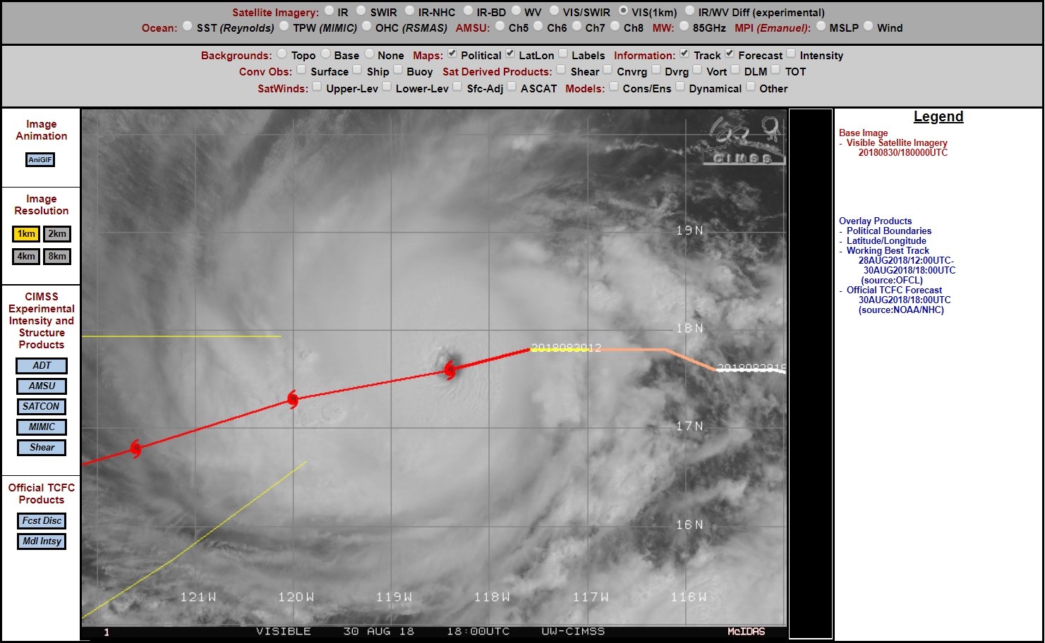 Norman's intensity has increased an estimated 70 kt from 1200 UTC yesterday morning to 1200 UTC this morning- the fastest in the basin since Patricia in 2015. Norman has become the 5th category 4 hurricane in the eastern Pacific in 2018 and is also the strongest hurricane in the basin so far this season.