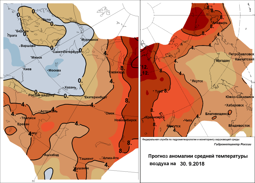 Noord Rusland leeft regionaal 12 graden boven stand.