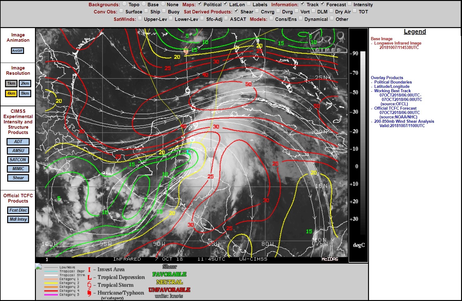 000 WTNT44 KNHC 070851 TCDAT4 Tropical Depression Fourteen Discussion Number 3 NWS National Hurricane Center Miami FL AL142018 400 AM CDT Sun Oct 07 2018 Radar data from Belize and infrared satellite imagery indicate that the low pressure system centered just off the coast of the Yucatan Peninsula has continued to become better organized, with deep convection consolidating just to the northeast of the low-level center. Dvorak estimates have increased to T2.0 from TAFB and T1.5 from SAB, indicating that the convective pattern has become sufficiently organized for the low to now be declared a tropical depression. The maximum winds are estimated to be 30 kt based on earlier ASCAT data. The Belize radar data was extremely helpful in locating the depression's center, and the system's 12-hour average motion is north-northwestward, or 340 degrees, at a very slow 3 kt. The depression is expected to move generally northward during the next 3 days, gradually gaining speed as it enters the southerly flow between high pressure over the western Atlantic and an advancing deep-layer trough over the western half of the United States. After day 3, the trough is expected to cause the cyclone to turn northeastward and accelerate further across the southeastern United States. While the track models agree on the general scenario, there are some speed differences, most notably with the ECMWF model being slower than the other guidance. Also, the ECMWF and GFS models are located along the western edge of the guidance envelope. In light of these facts, the new NHC prediction is just a little slower than the previous one, and it lies to the west of the TVCN multi-model consensus and the HCCA model during the first 3 days of the forecast. The depression is still being hampered by 20-30 kt of westerly shear, however it is also located in an environment of upper-level diffluence to the southeast of a stationary trough over the Gulf of Mexico. The shear in the immediate vicinity of the cyclone is forecast to gradually abate during the next 2-3 days while the diffluent upper-air pattern continues, and along with sufficiently warm waters of 28-30 degrees Celsius, all indications are that the depression will gradually strengthen while it moves northward over the Gulf of Mexico. In fact, nearly every piece of intensity guidance brings the cyclone to hurricane strength before it reaches land, including the GFS, ECMWF, and UKMET global models, which all show significant deepening of the central pressure. The updated NHC intensity forecast generally lies between the ICON intensity consensus and the HCCA model for the entire forecast period, and it now explicitly shows the cyclone reaching hurricane strength by 72 hours. Key Messages for Tropical Depression Fourteen: 1. The depression is producing heavy rainfall and flash flooding over portions of Central America, and these rains will spread over western Cuba and the northeastern Yucatan Peninsula of Mexico during the next couple of days. 2. The depression is forecast to become a tropical storm later today, and tropical storm conditions are expected by tonight over portions of western Cuba and the northeastern Yucatan Peninsula, where tropical storm warnings are in effect. 3. Storm surge, rainfall, and wind impacts are possible over portions of the northern Gulf Coast by mid-week, although it is too soon to specify the exact location and magnitude of these impacts. Residents in these areas should monitor the progress of this system. FORECAST POSITIONS AND MAX WINDS INIT 07/0900Z 18.6N 86.9W 30 KT 35 MPH 12H 07/1800Z 19.4N 86.7W 35 KT 40 MPH 24H 08/0600Z 20.8N 86.4W 45 KT 50 MPH 36H 08/1800Z 22.3N 86.6W 50 KT 60 MPH 48H 09/0600Z 23.9N 87.1W 55 KT 65 MPH 72H 10/0600Z 27.6N 87.3W 65 KT 75 MPH 96H 11/0600Z 32.0N 84.0W 45 KT 50 MPH...INLAND 120H 12/0600Z 37.0N 76.0W 45 KT 50 MPH...NEAR THE VA COAST